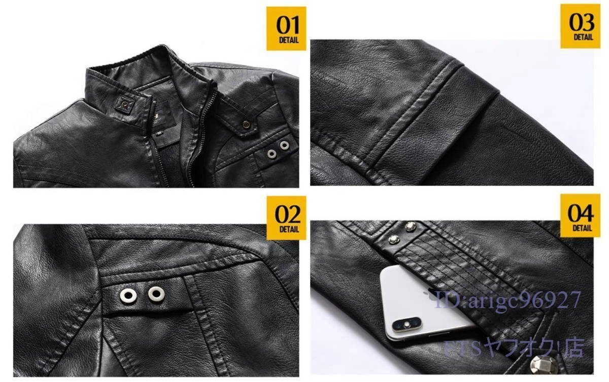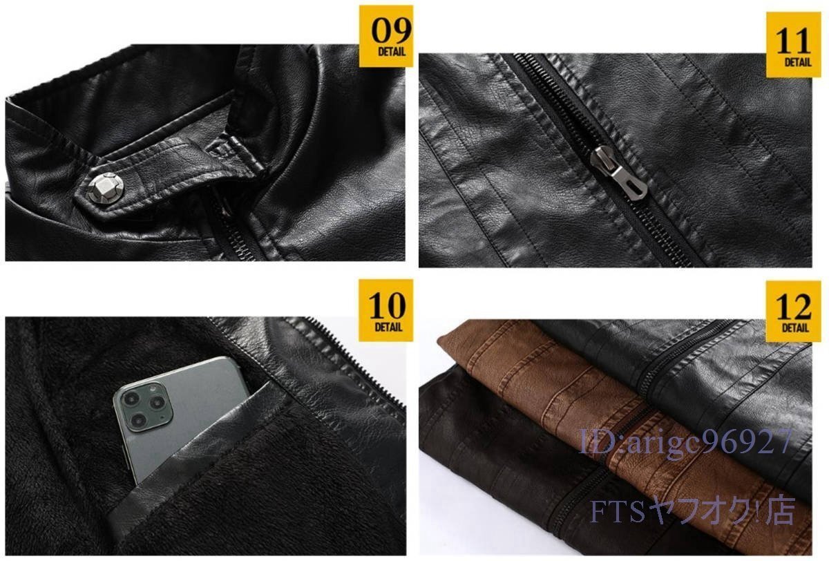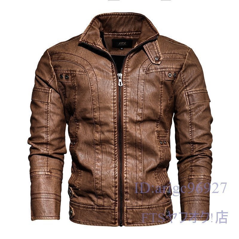 T879☆新品ライダースジャケット メンズ 裏薄めボア トレンド ステキレザー ブルゾン コート カジュアル バイクウエア ブラウン L