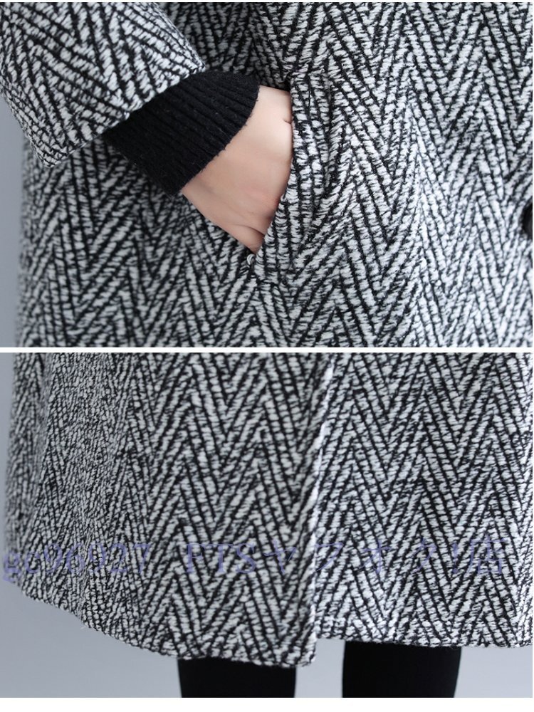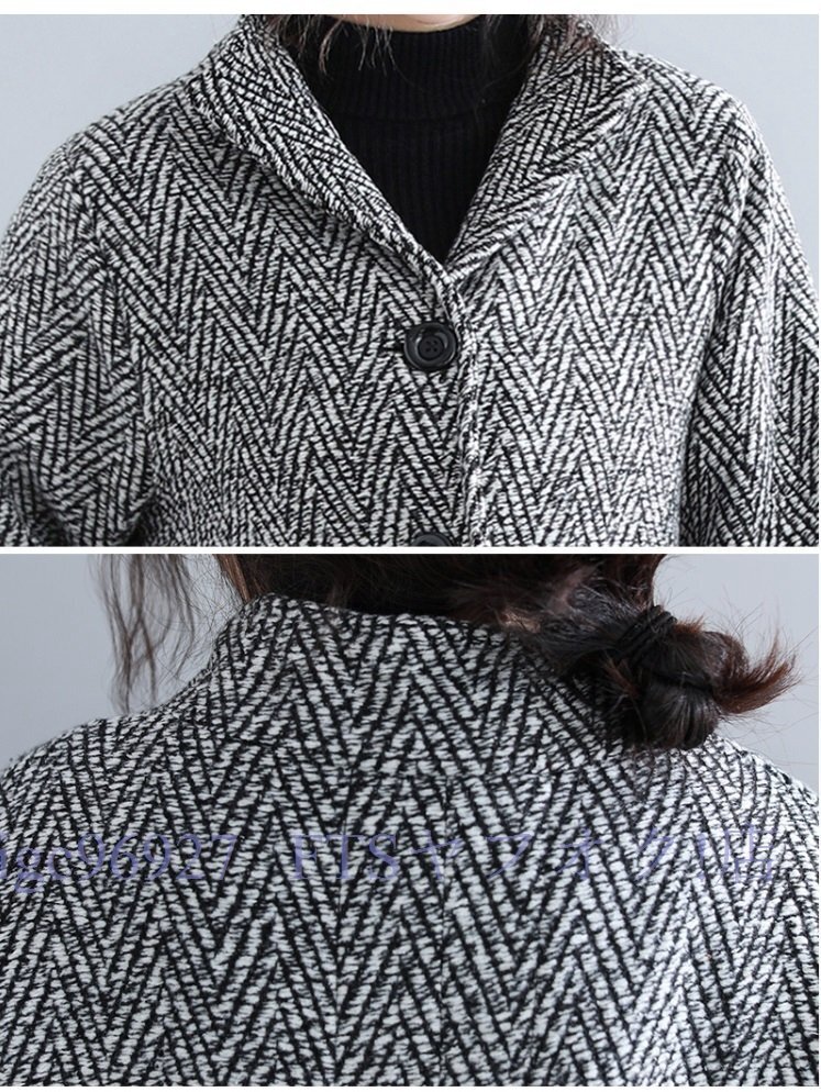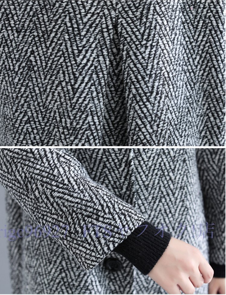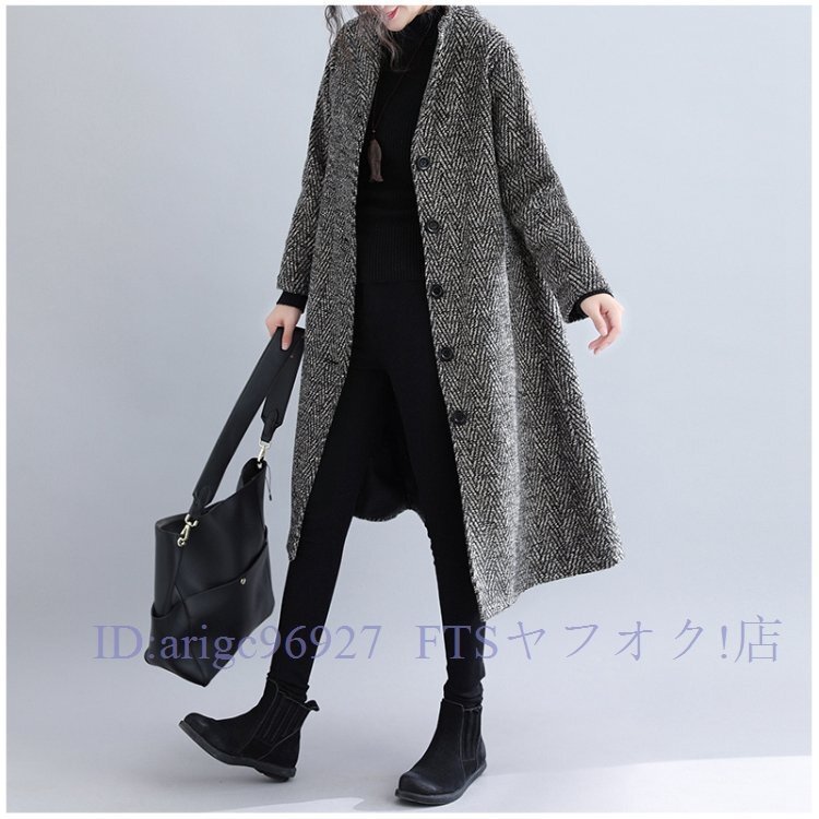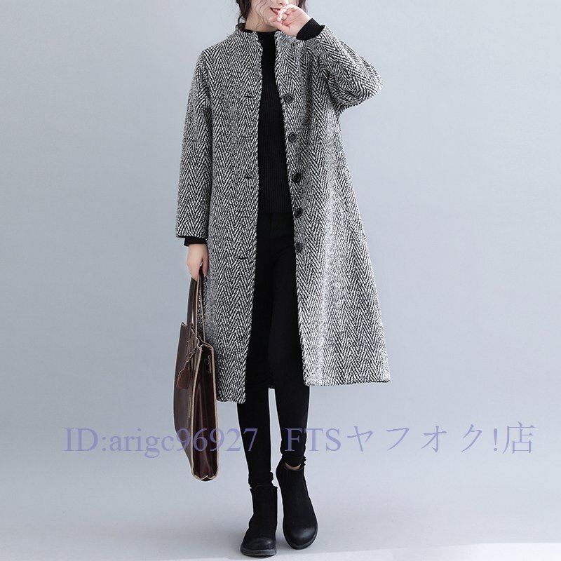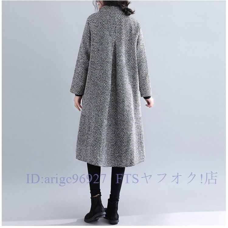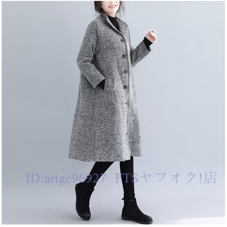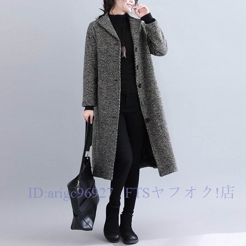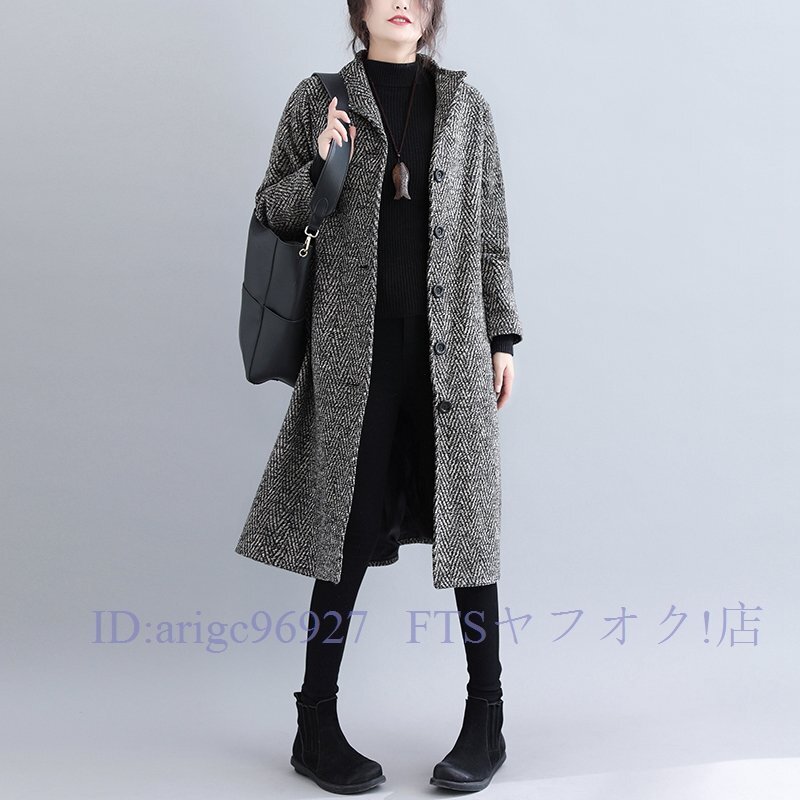 A6018☆新品秋冬 カジュアル ゆったり大きいサイズ チェック柄 長袖 暖かい コート 通勤 ミモレ丈コート M~2XL ブラック