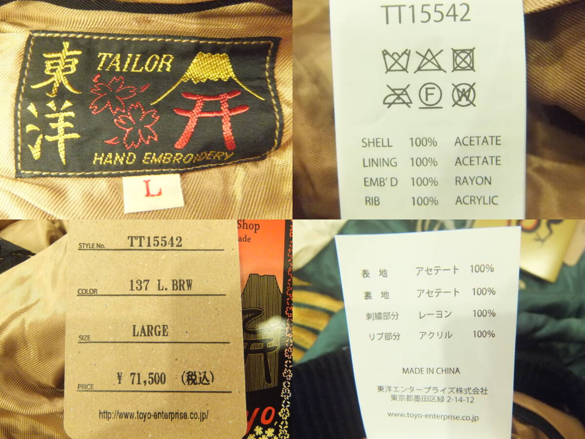 東洋スカジャン正規店 TT15542-137 アセテート生地のスカジャン リバーシブル[薄茶=虎+龍][緑=鷲+富士山][L]新品が送料無料で!!
