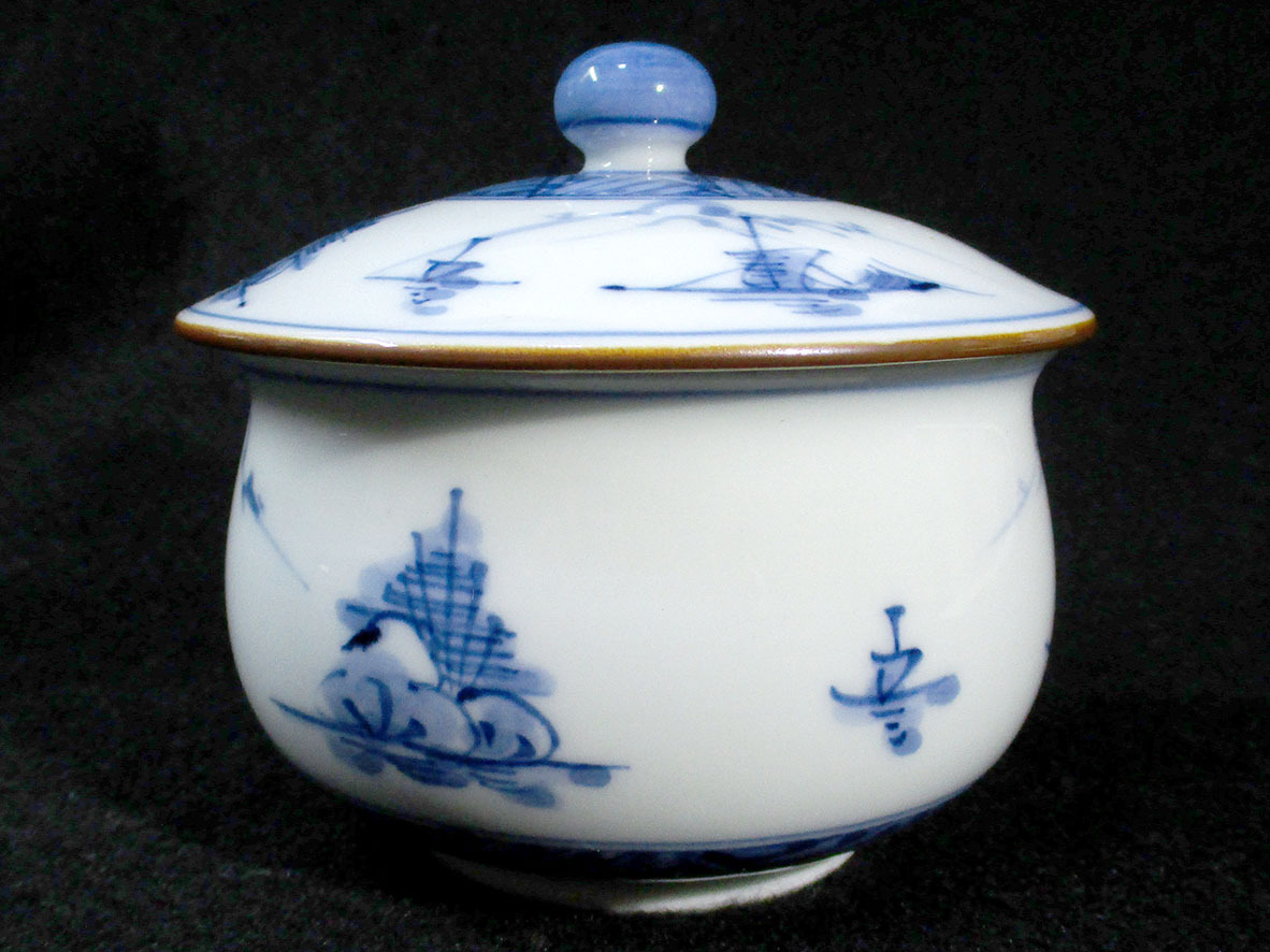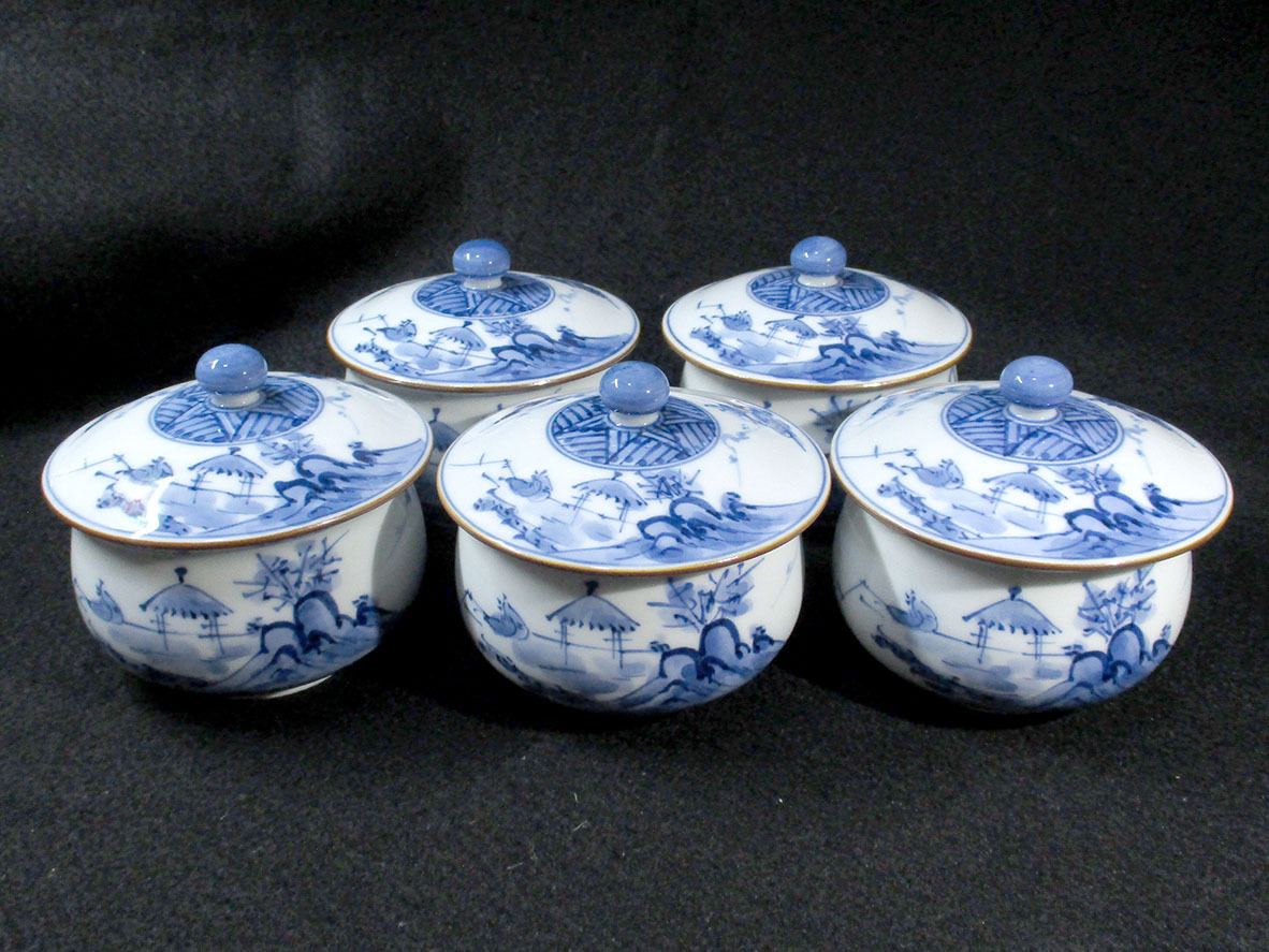 ★ 伊万里 肥前皿山 幸祥窯 汲出揃 地紋山水 蓋付茶碗 5客 未使用 ★