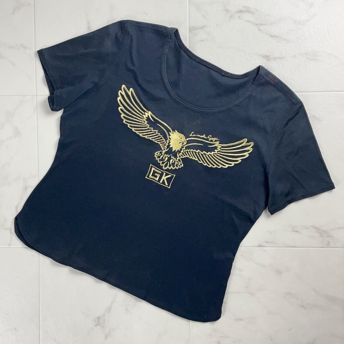 伊太利屋 イタリヤ 刺繍Tシャツ 半袖カットソー トップス レディース 黒 ブラック サイズ7*SC1596
