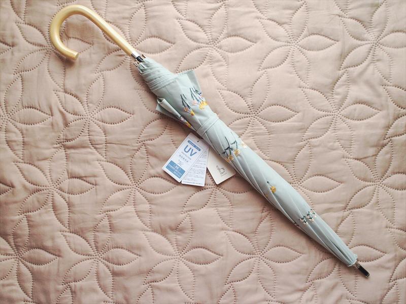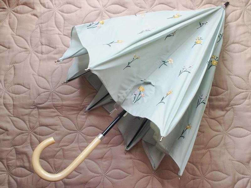 新品未使用・because ビコーズ・おしゃれで可愛いお花の刺繍の晴雨兼用長傘・若草色☆着物
