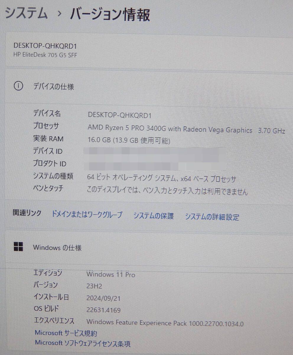 HP EliteDesk 705 G5 SFF AMD Ryzen 5 PRO 3400G 3.70GHz メモリ16GB DVD HDD1TB Windows11 Pro 管48