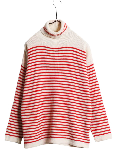 | 商品名 | 90s OLD GAP タートルネック ボーダー コットン ニット セーター レディース S / 古着 90年代 オールド ギャップ ヘビーウェイト ツートン |