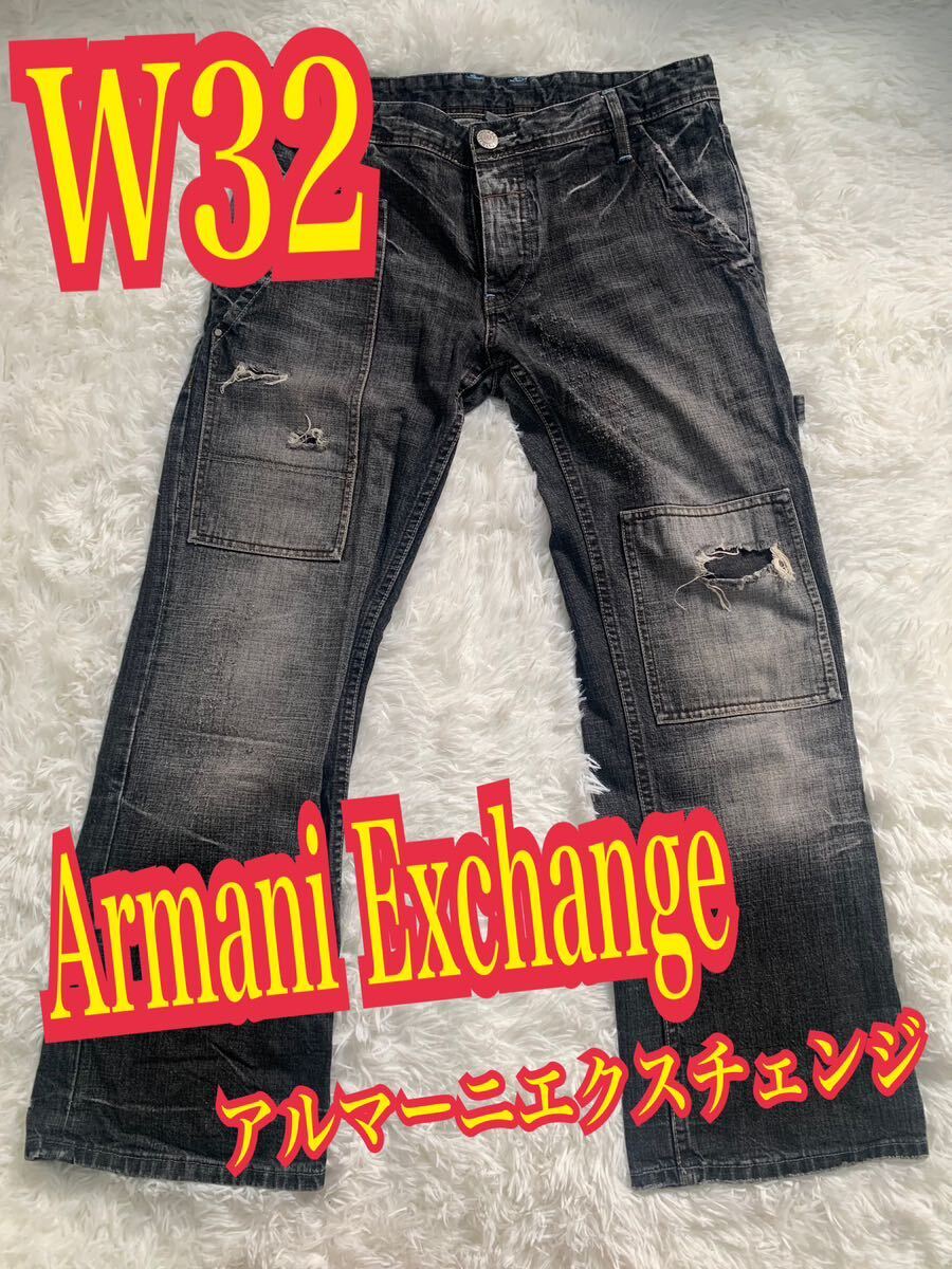 Armani Exchangeアルマーニ エクスチェンジ デニム ジーンズ ダメージ リペア加工 黒 W32