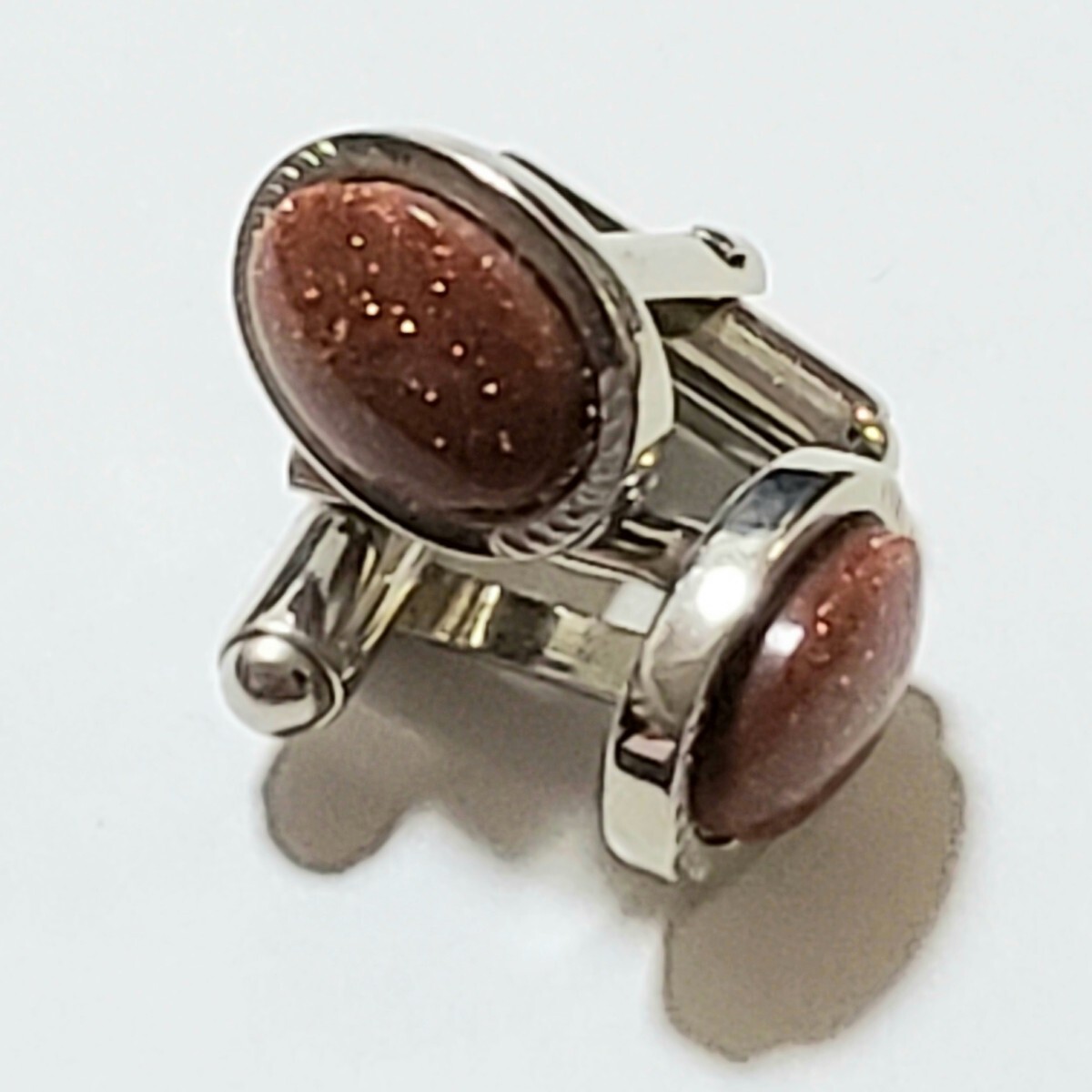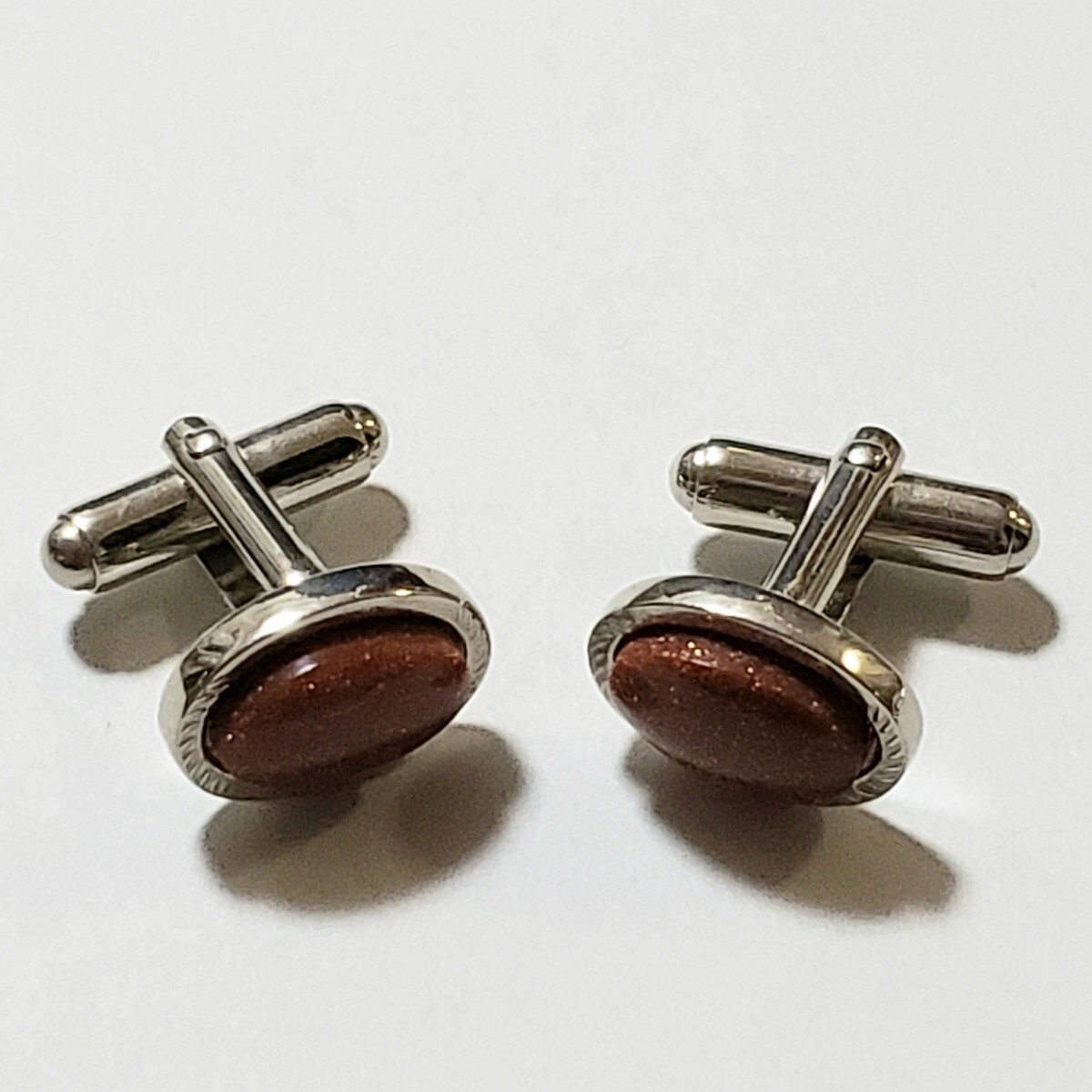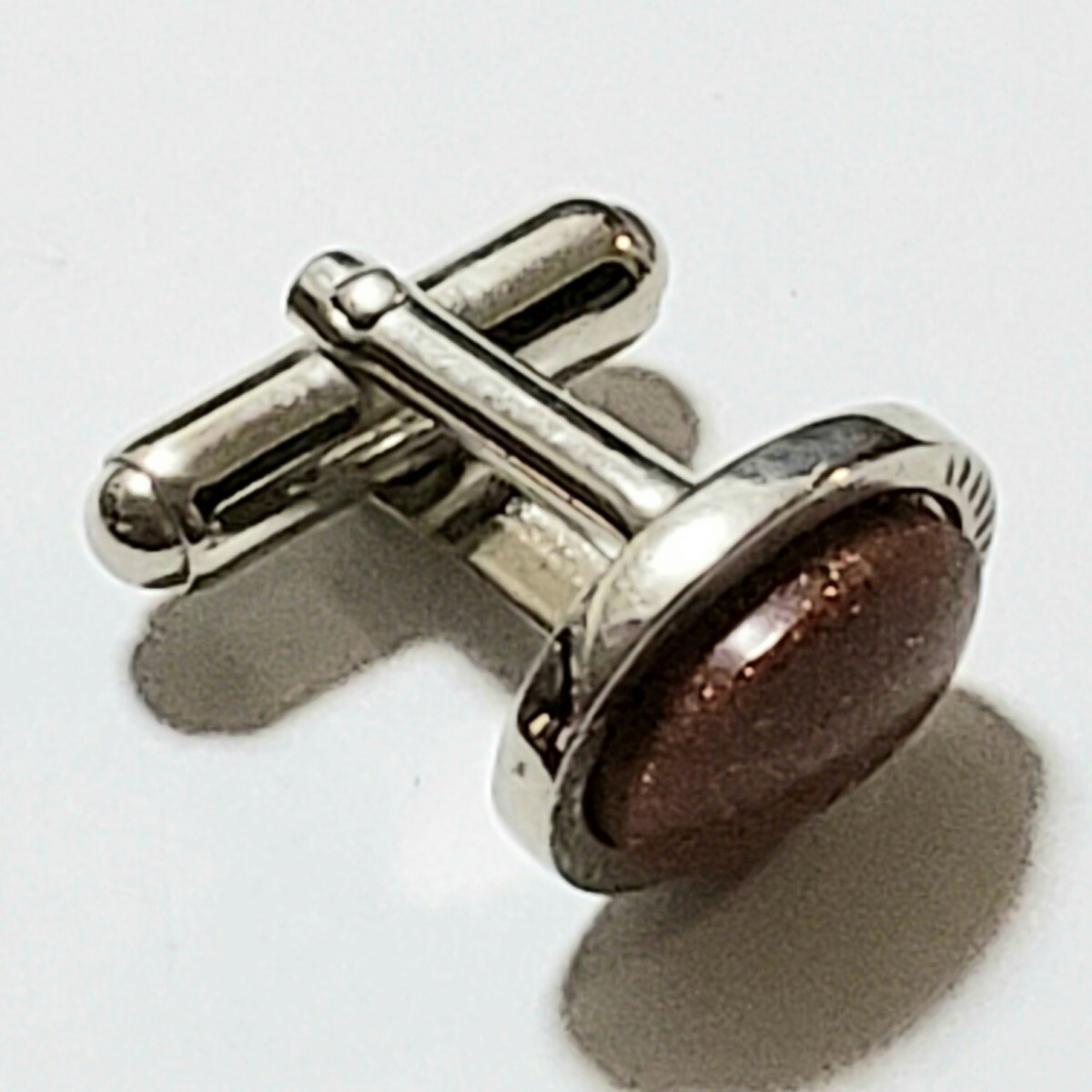 送料無料 昭和~平成レトロ カフスボタン シルバー&ストーン ラメ入り 金属製 バブル カフス シンプル