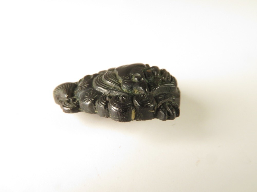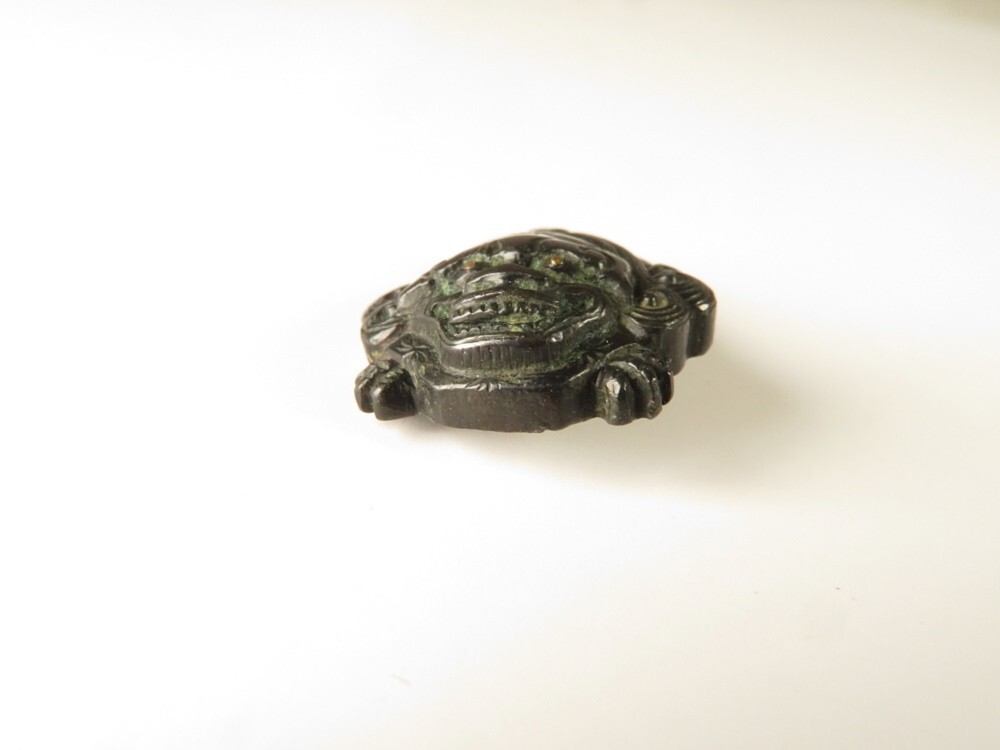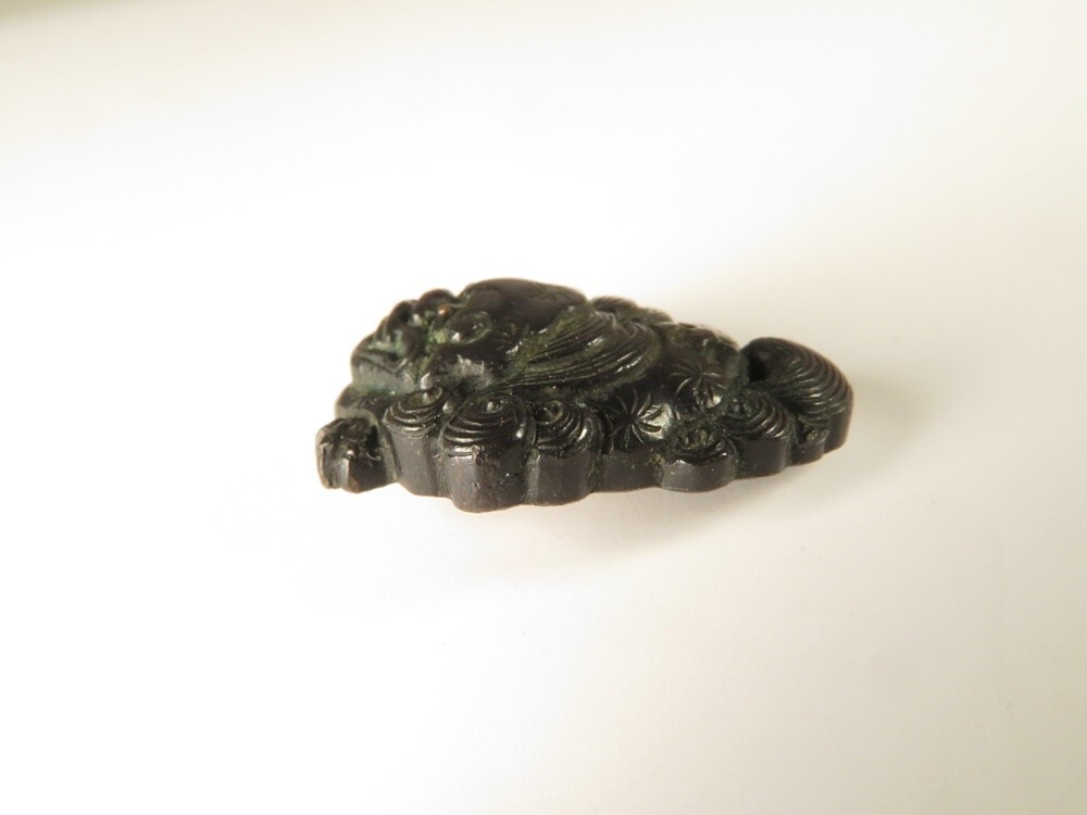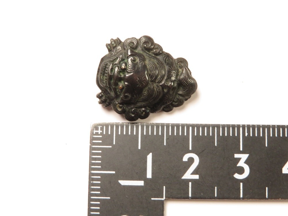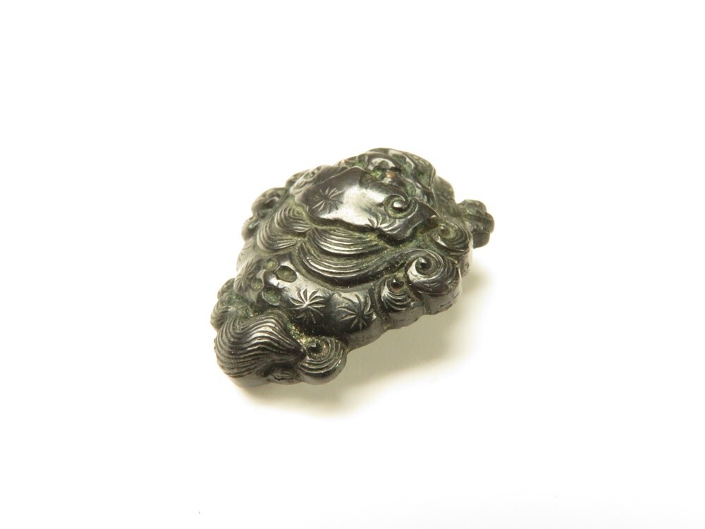 ●江戸~明治 堤物・刀装具 赤銅 向かい獅子 彫金 金具になります。古い物ですが極力状態の良い作品を出品しておりますので是非ご覧ください。 【状態】 ●経年を考慮し状態はよいと思います。 【サイズ(約)】 ●2×1.7㎝ (素人寸法ですので、若干の誤差はお許し下さい) 【重量(約)】 ●5g 【領収書に関しまして】 領収書発行は致しておりません。 Yahoo!かんたん決済手続き完了時の確認画面をプリントアウトして領収書としてお使い下さい。 ※領収証として税務署に認められております。 ご了承のうえでのご参加をお願いいたします。 |