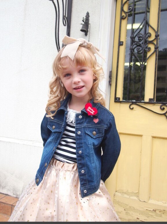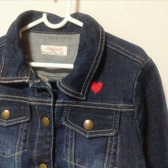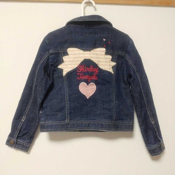 ラメの刺繍やボーダーのリボンなど、後姿がとても素敵なデニムジャケットです
