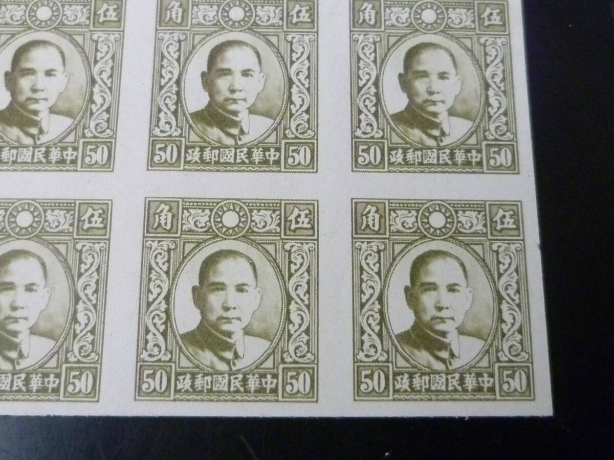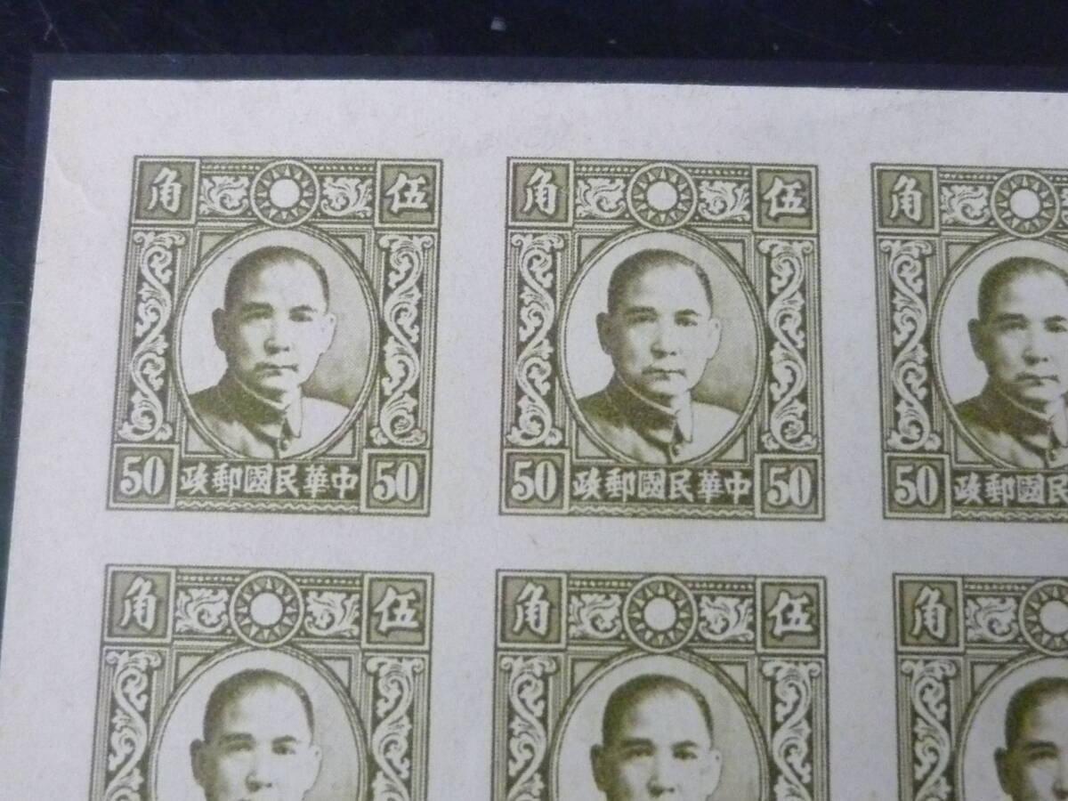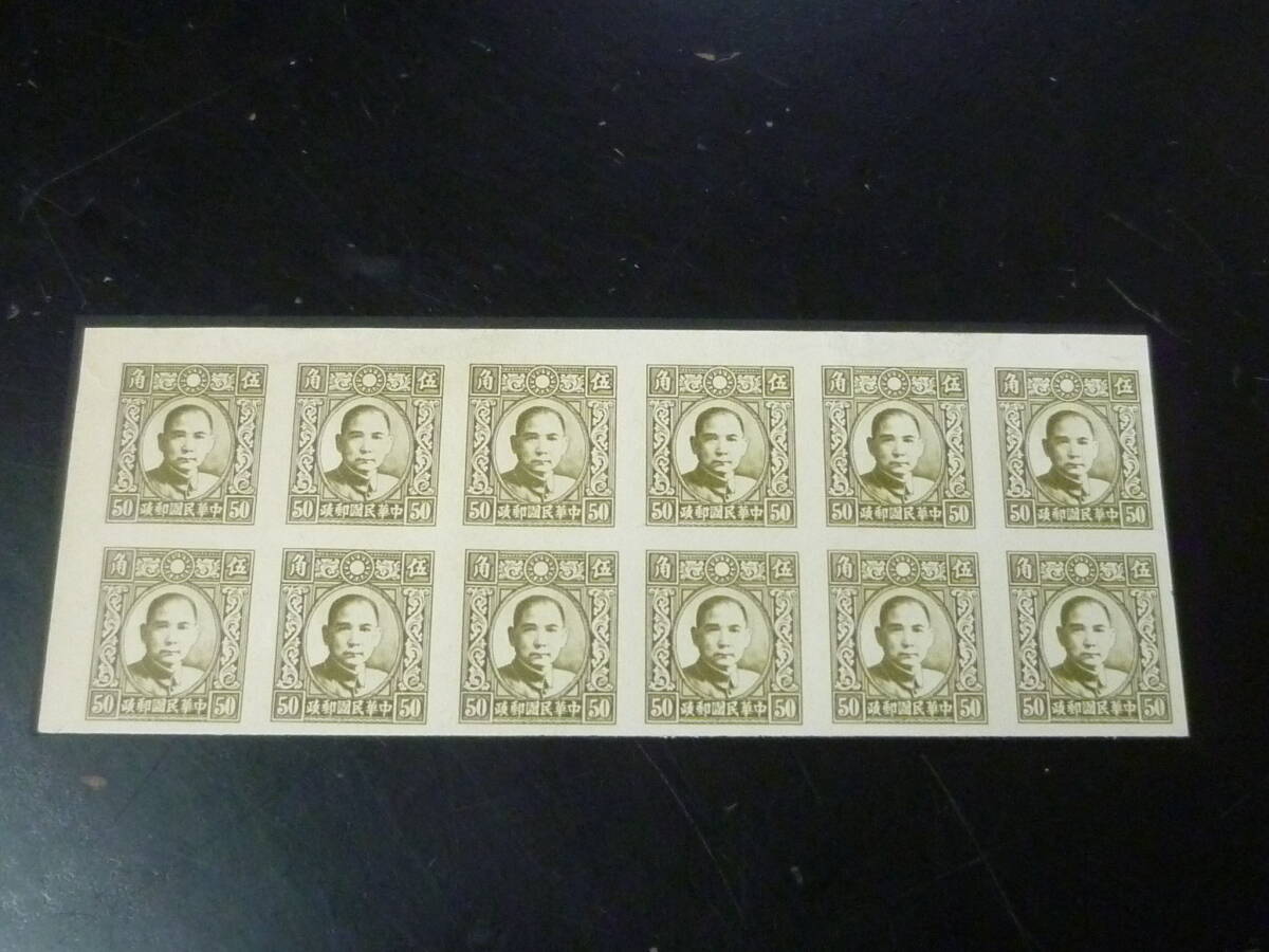 25 M №11 旧中国切手 1935年 試印票 美国版 国父像 無目打 12枚ブロック 50c 印刷所台紙に上部5枚ベタ貼有 ※説明欄必読