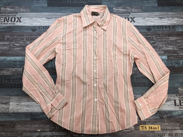 Calvin Klein カルバンクライン レディース マルチストライプ 長袖シャツ M ピンクベージュ です。