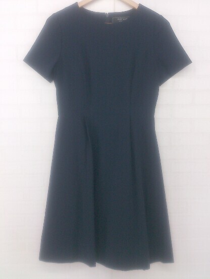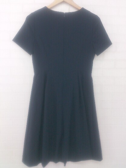 ◇ BEAMS LIGHTS ビームス ライツ シンプル 無地 ノーカラー 半袖 膝丈 ワンピース サイズ38 ネイビー レディース P