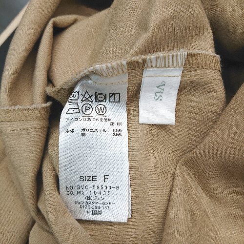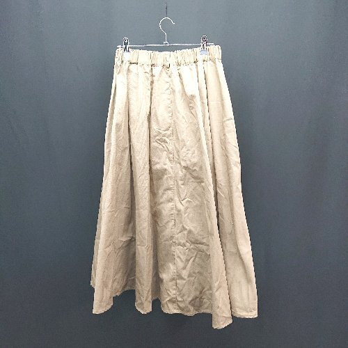 ◇ ViS ビス バックウエストゴム ゴールドボタン カジュアル ロング フレア スカート サイズF ベージュ レディース E