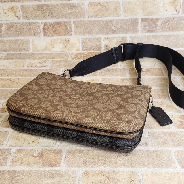 | COACH コーチ シグネチャー エヴァレット クロスボディ ブロックド ショルダーバッグ バイカラー ベージュ ダークグレー | |