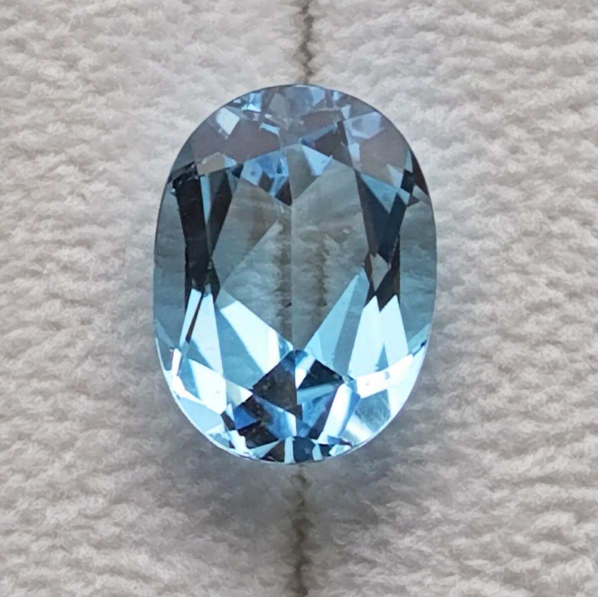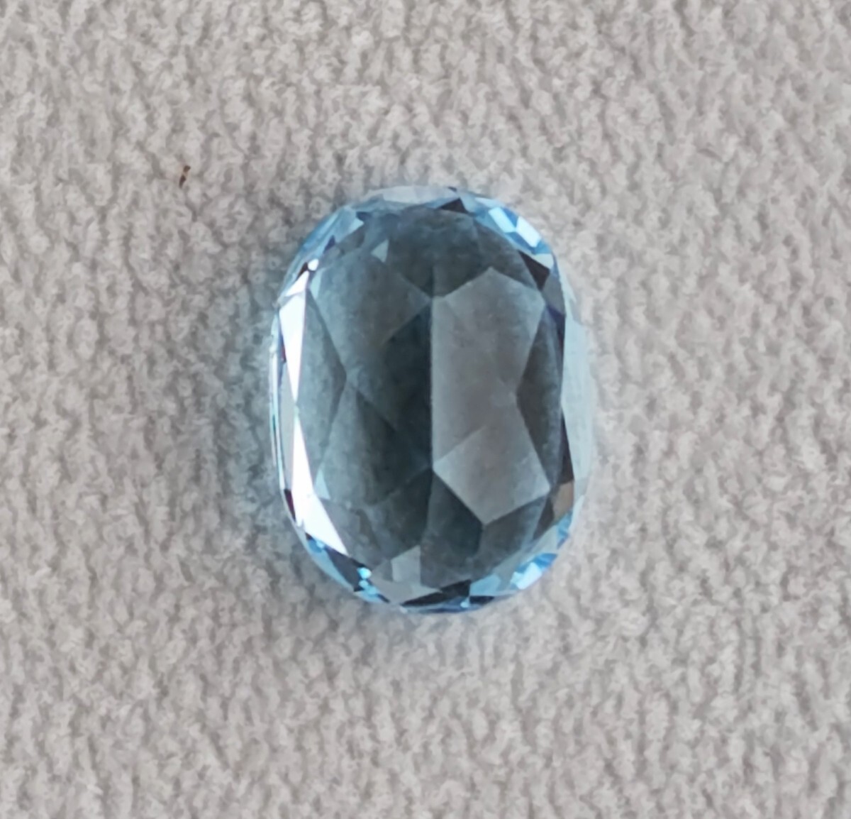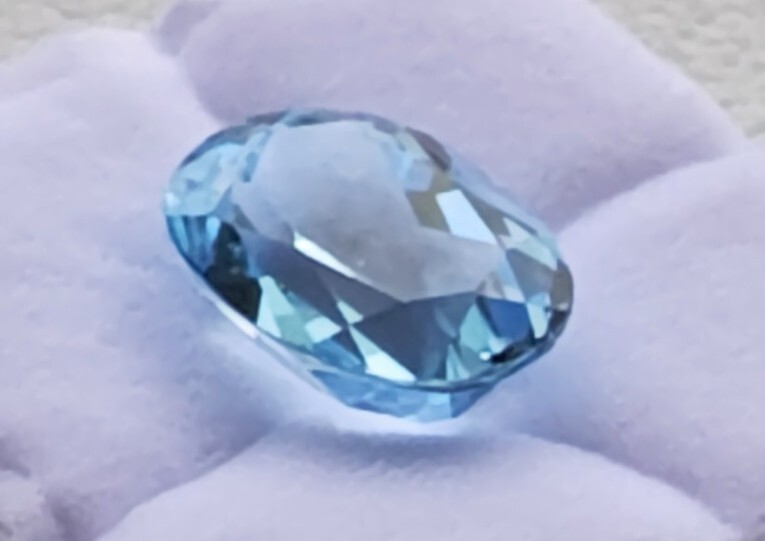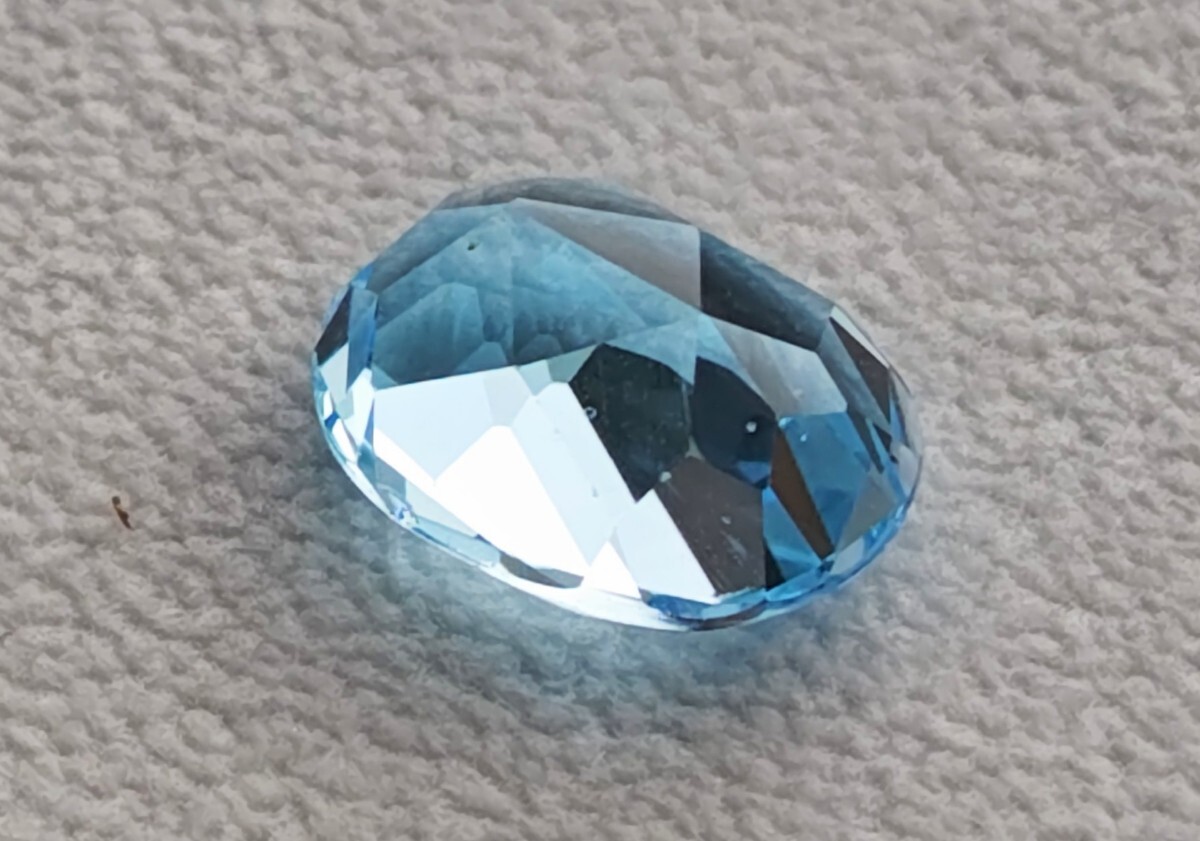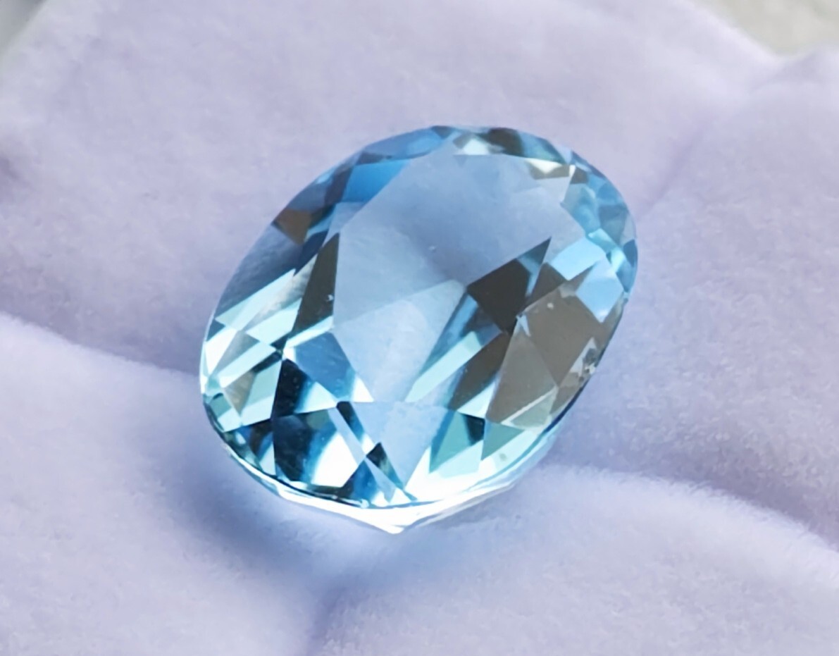 気分を明るくしてくれる青空のようなブルーが美しい、オーバルカットのブルートパーズです。久しぶりの大きめルースで、カットが綺麗なブルーを引き立てています。今回出品しております中でも一番大粒です。