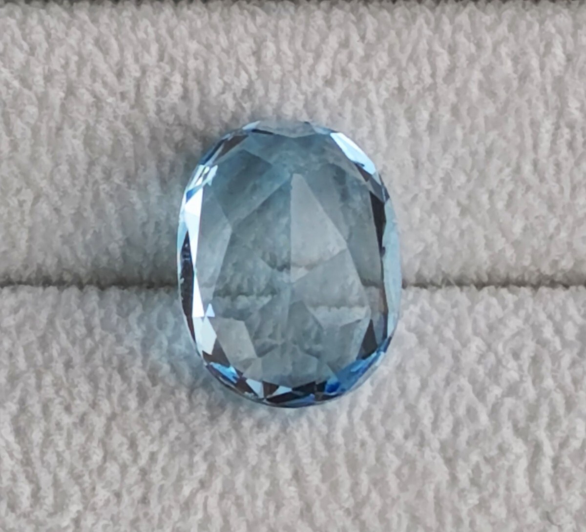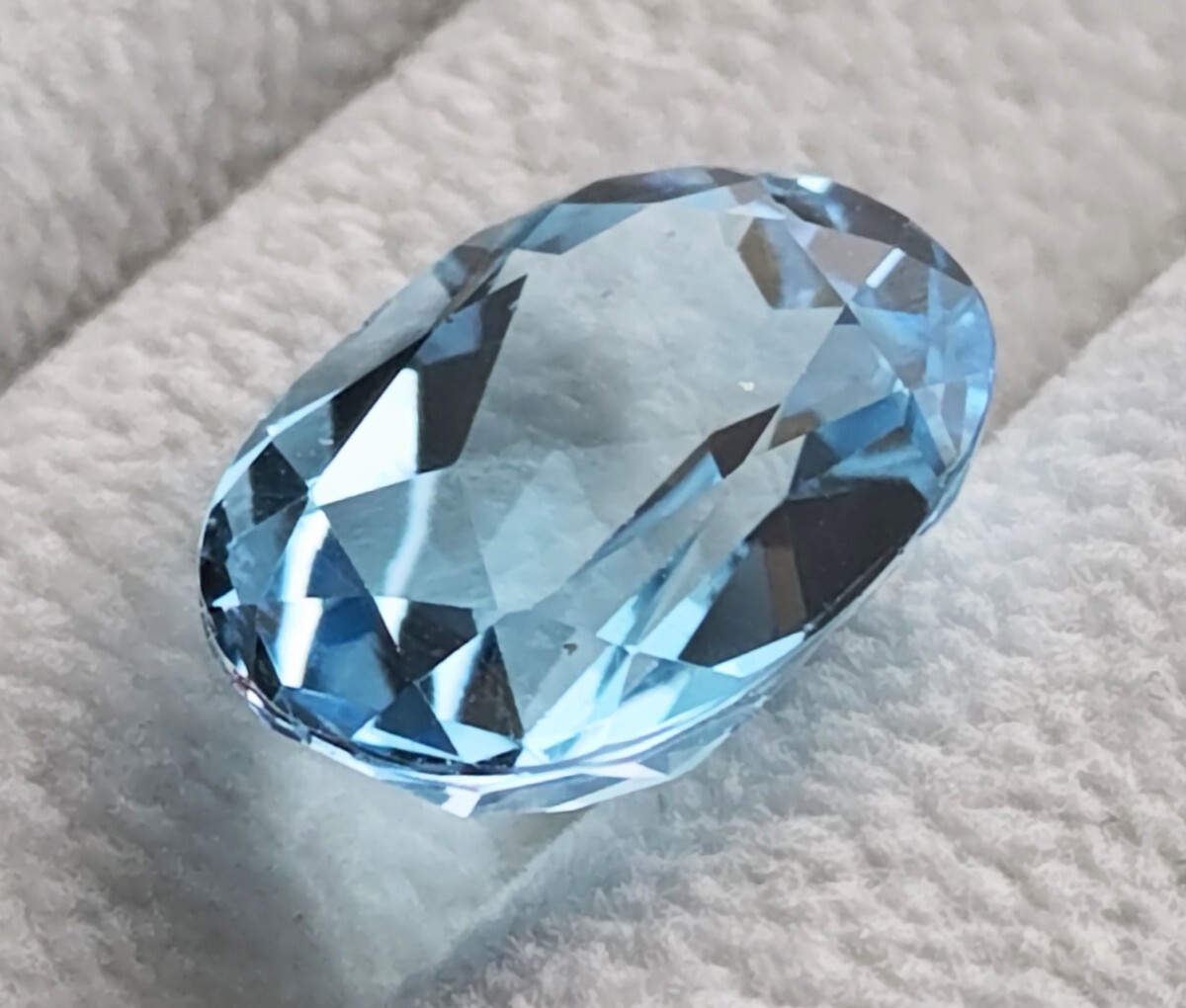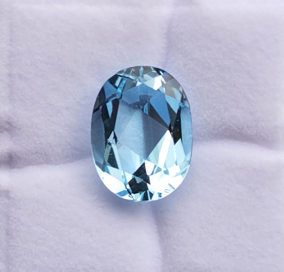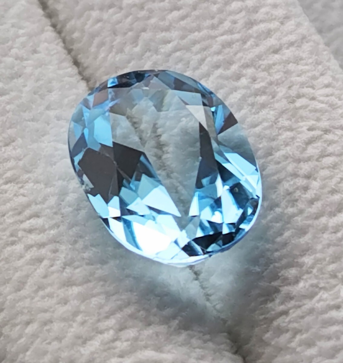 気分を明るくしてくれる青空のようなブルーが美しい、オーバルカットのブルートパーズです。久しぶりの大きめルースで、カットが綺麗なブルーを引き立てています。今回出品しております中でも一番大粒です。