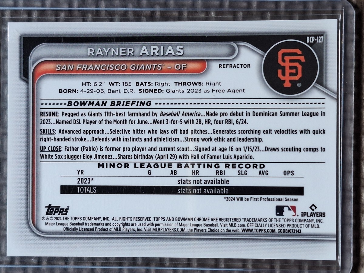 2024 Bowman Chrome Prospect #BCP-127 RAYNER ARIAS Refractor 175/499 San Francisco Giants
