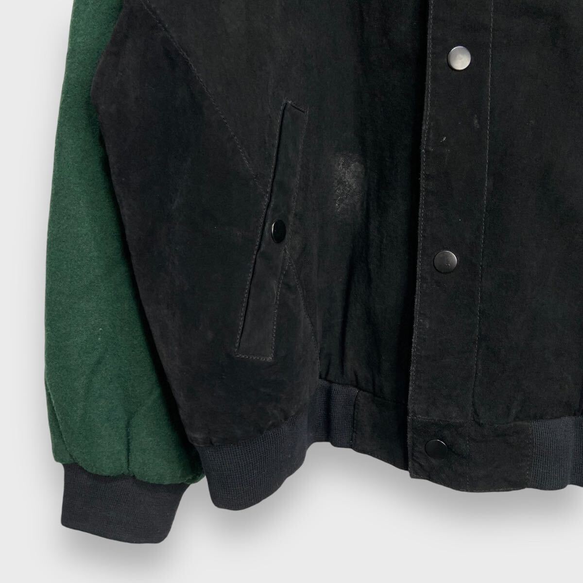 ボディがブラックのスエードレザーで、スリーブがチームカラーのグリーンを使用したウール素材に切り替わったスタジャンです!
