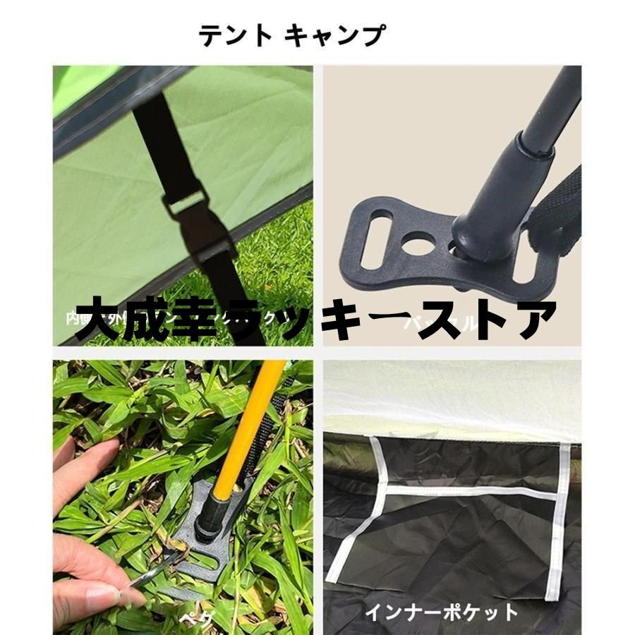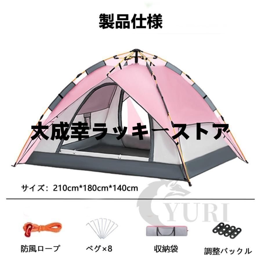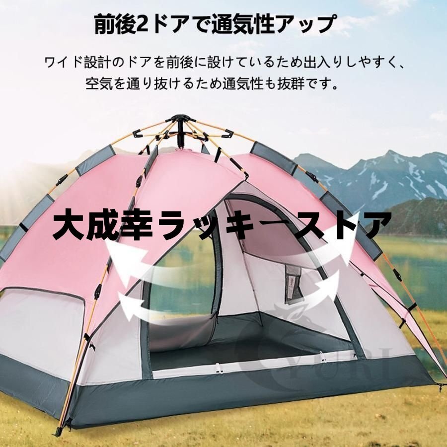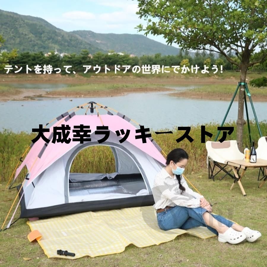ワンタッチ アウトドア キャンプ テント 3?4人用 設営簡単 防風防水 紫外線防止 防災用 アウトドア用 ハイキング 登山 四季兼用 収納袋付き