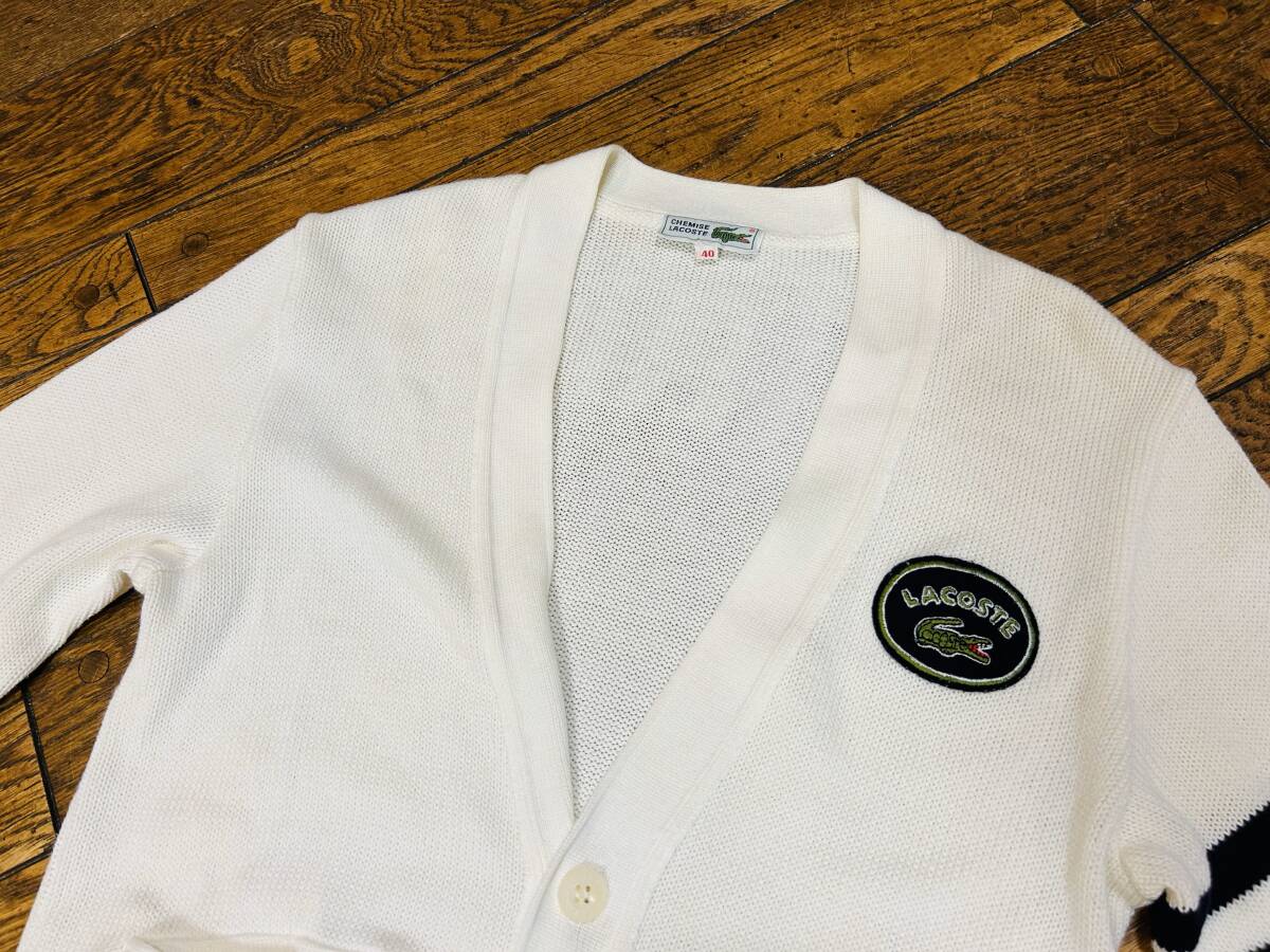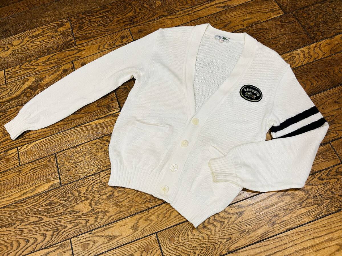 A3177 シミーズ ラコステ LACOSTE◆コットン カーディガン メンズ40 ホワイト ビンテージ