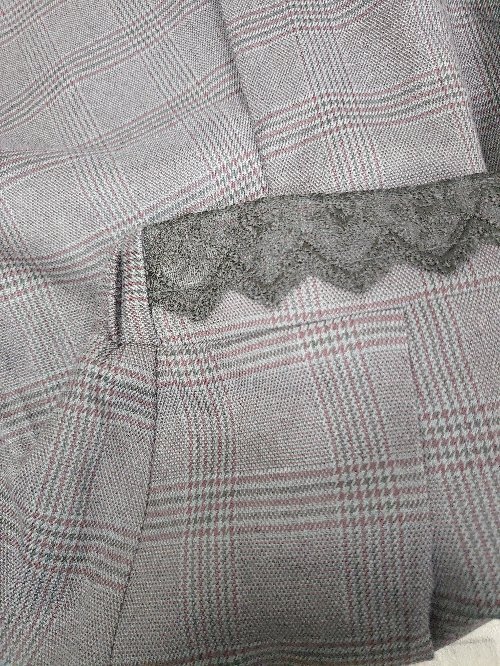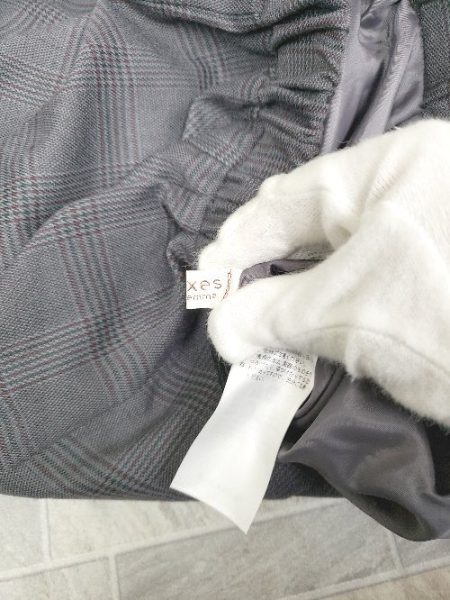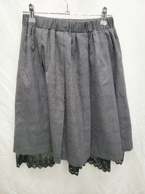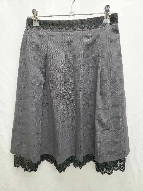 ◇ ⊇ axes femme アクシーズファム チェック レース 膝下丈 フレア スカート サイズM ダークグレー マルチ レディース P