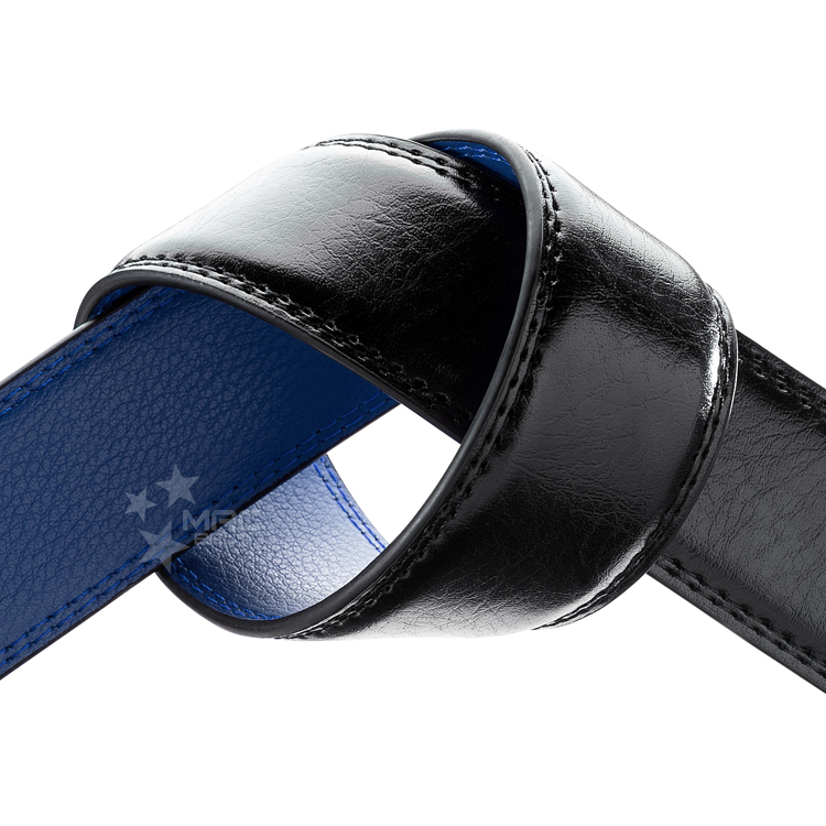 サイズ調整はいつでもワンタッチで自由自在。快適レザーベルトです。
