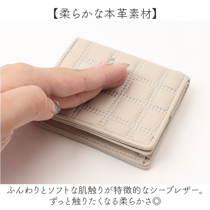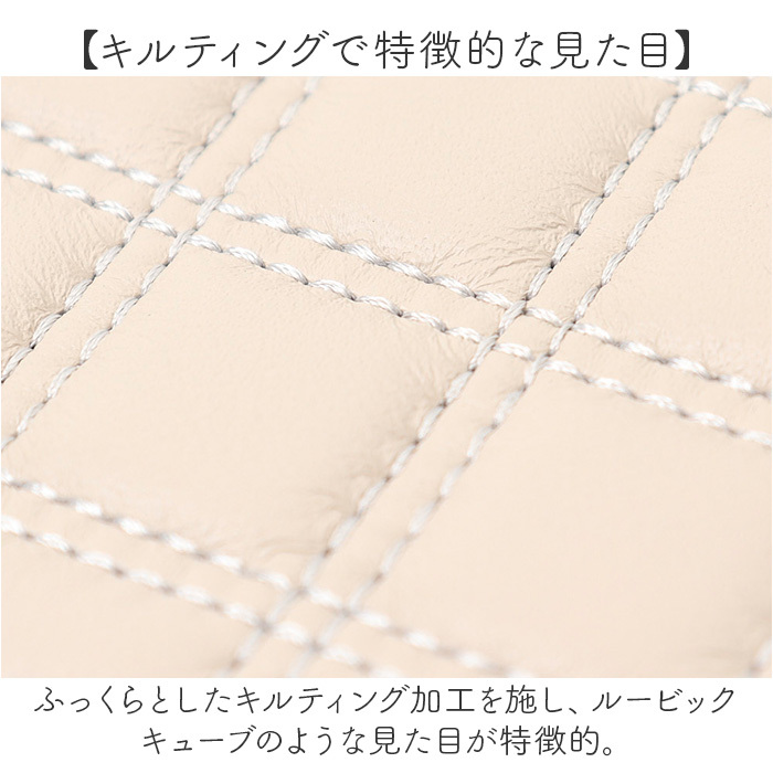 商品説明 | ・・【人気デザインが復刻♪】 ・ルービックキューブから着想を得たキルティング財布シリーズがSOLATINAから発売。 ・【柔らかな本革素材】 ・ふんわりとソフトな肌触りが特徴的なシープレザー。ずっと触りたくなる柔らかさ◎ ・【キルティングで特徴的な見た目】 ・ふっくらとしたキルティング加工を施し、ルービックキューブのような見た目が特徴的。 ・【コンパクトなサイズ感】 ・小さいカバンやアウターのポケットに入るサイズ感で持ち出しに便利☆ ・【かさばらない薄マチ設計】 ・厚みがない薄マチ設計なのでポシェットなどに入れてもかさばらないのも嬉しいポイント。 ・【スリットで出し入れスムーズ】 ・お札入れはスリットタイプにすることにより、お札の取り出しがスムーズに。 ・【名刺入れに】 ・小銭入れ部分に名刺を入れて名刺の保管と持ち出用にするのもオススメ♪ ・【エイジ・ジェンダーレスで】 ・シンプルなワンカラーのデザインで年代・性別問わず使えるのも魅力。 ・【スナップボタンで簡単開閉】 ・フラップはスナップボタンが付いており、簡単に開け閉めが可能。 ・【ブランドロゴ入り】 ・フラップ内側にブランドロゴを配置。 ・【専用BOX付きでギフトにも最適】 ・洗練された素材感とデザインが、特別な贈り物としてお相手への想いも伝わる。 ・【ポケット仕様】 ・カードポケット×4、小銭入れ×1、お札入れ×1 |