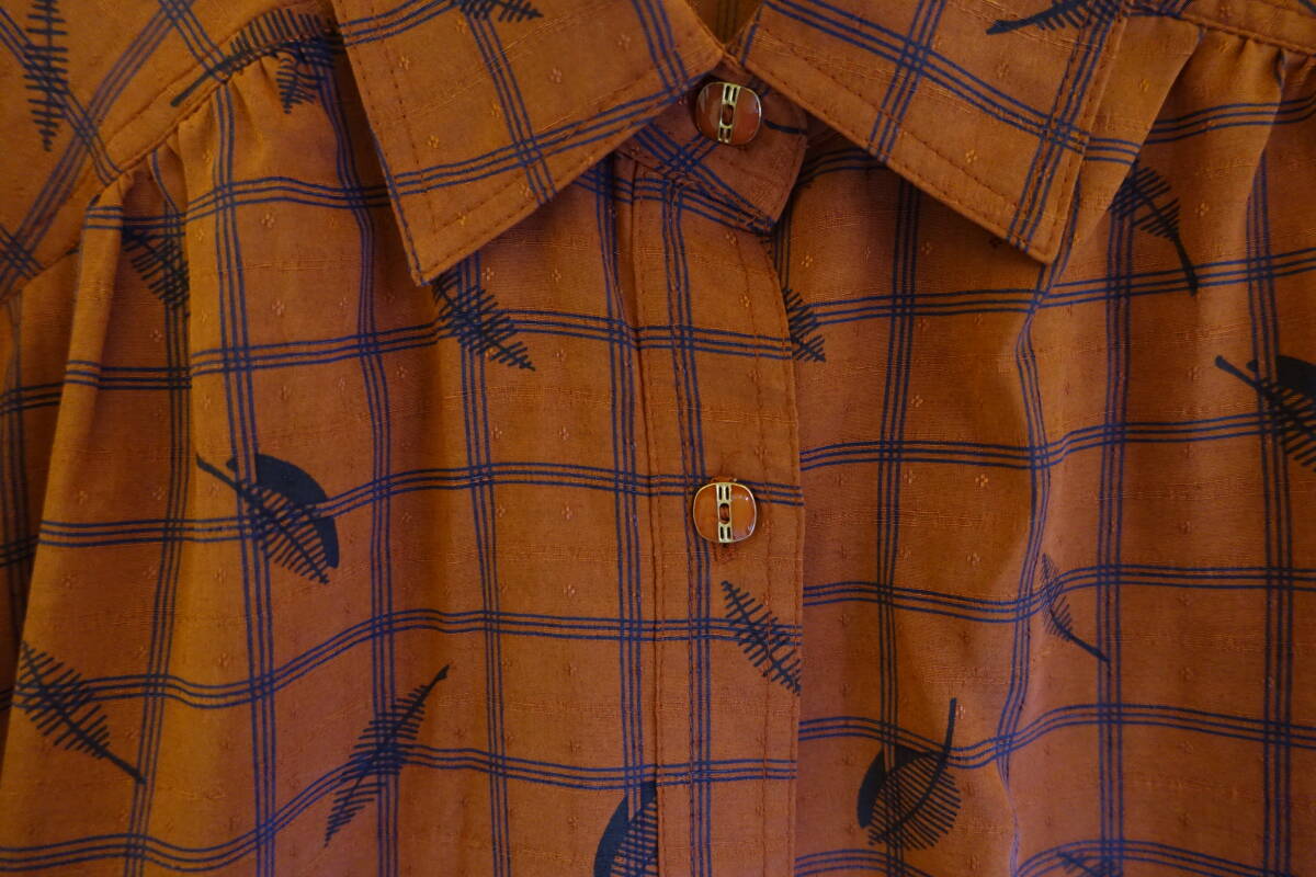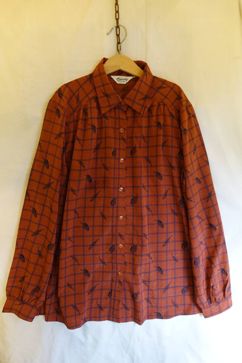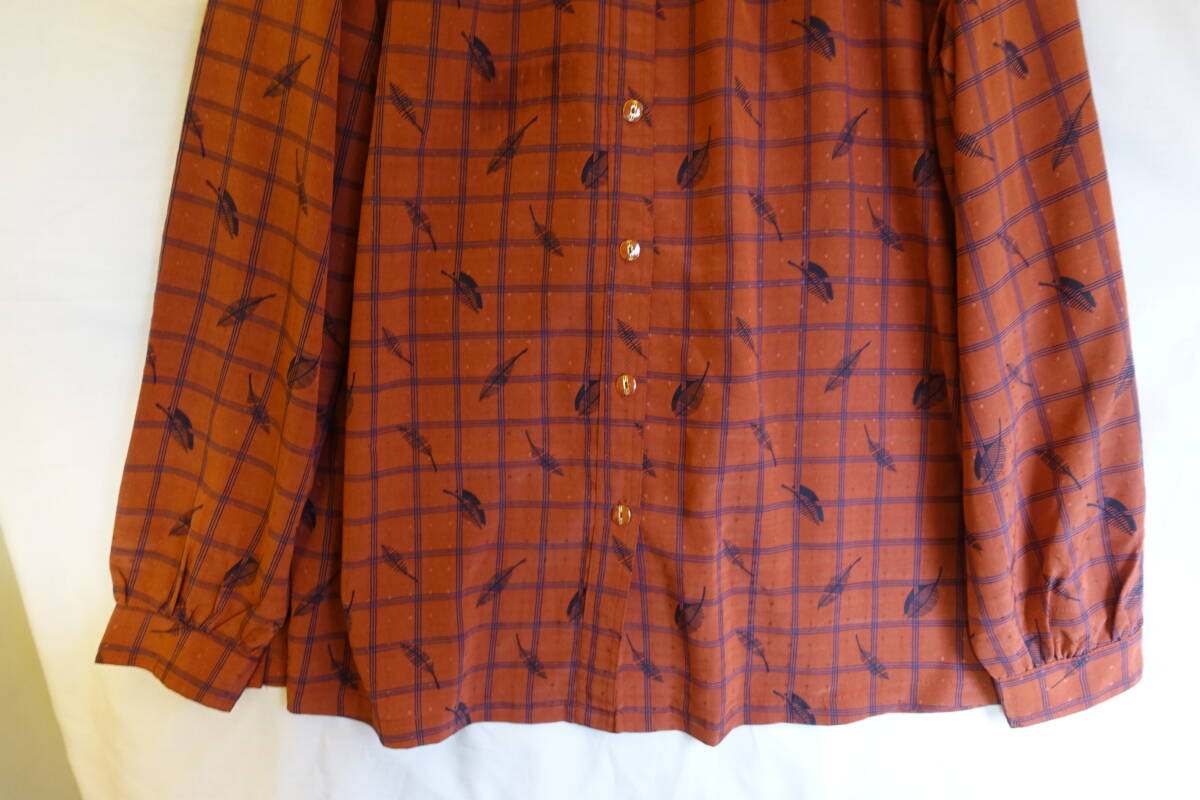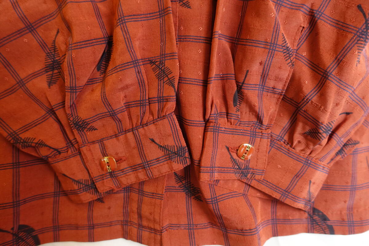 ○[60s70s80s vintage ヴィンテージ チェック リーフ レトロシャツ]USED古着 昭和レトロ・モダン・モッズ