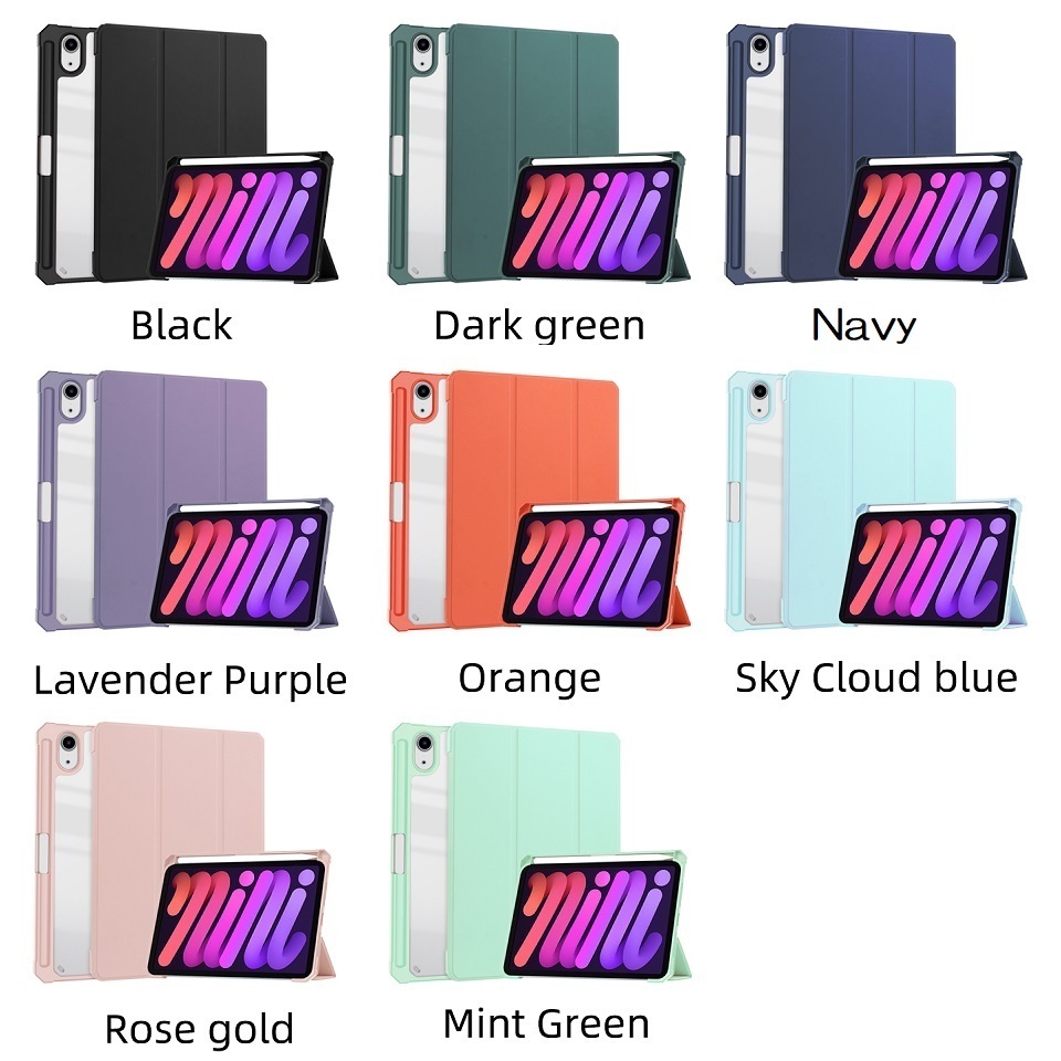 | iPad mini 7/mini6 8.3インチ通用 PUレザー TPUフレーム 背面透明 保護ケース 三つ折り スマートカバー ペアリング充電対応 アップルペンシル収納付 |