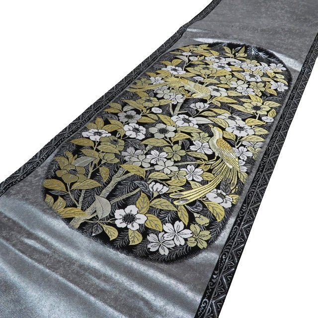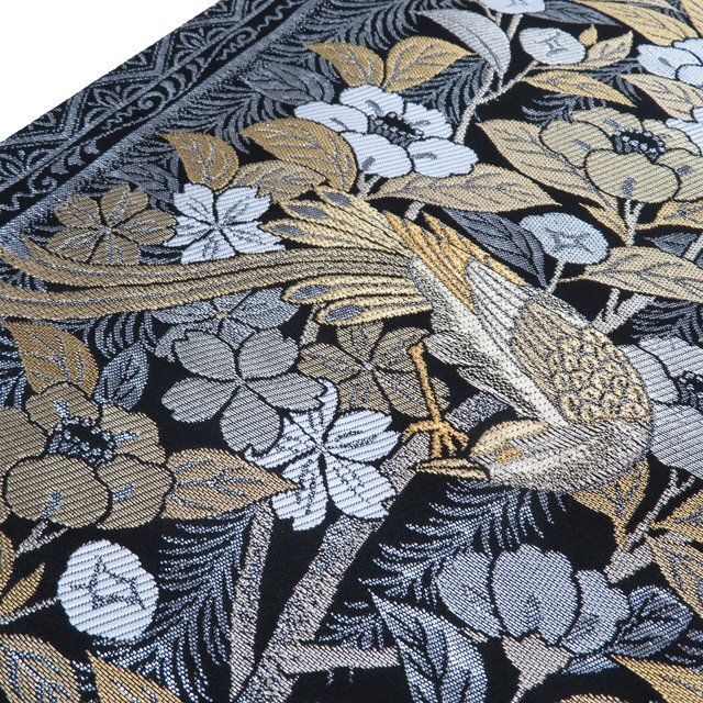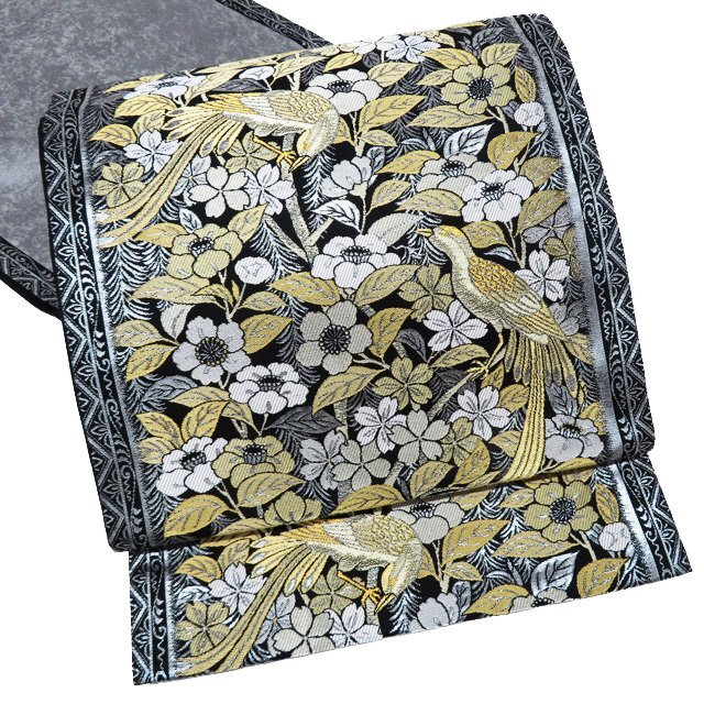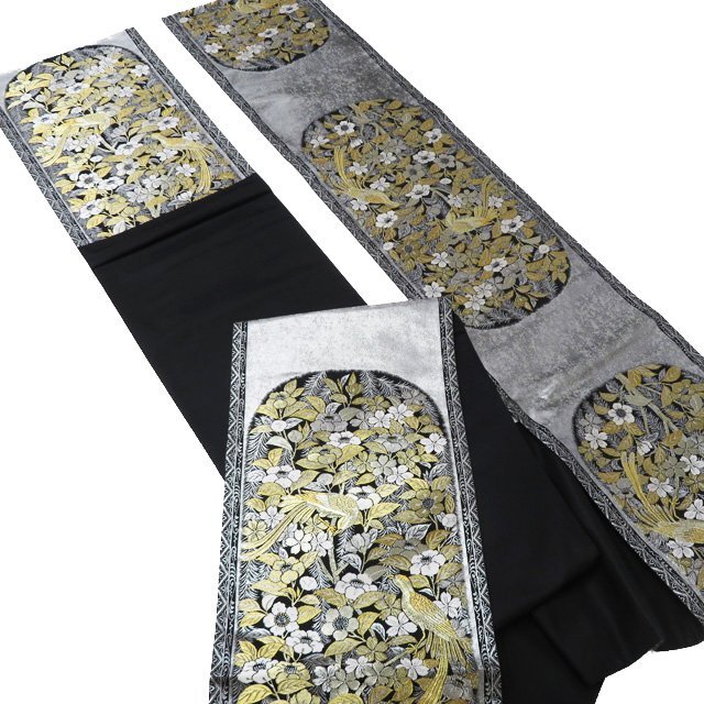 サイズ 440cm x 31cm 素材 正絹 商品ランク C ●お色 黒色 白色 金銀 真ん中辺りに点シミがございますが、他は綺麗でまだまだご着用いただけるお品物です。 一部商品は実店舗・他サイトでも並行して販売しておりますので売り切れの際はご了承ください。 その他多数販売中 gu- | ||||||