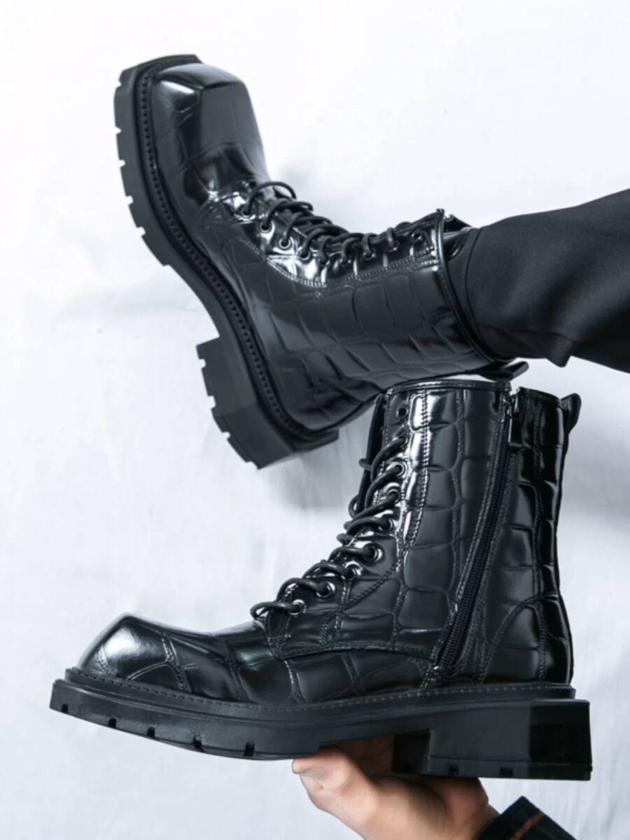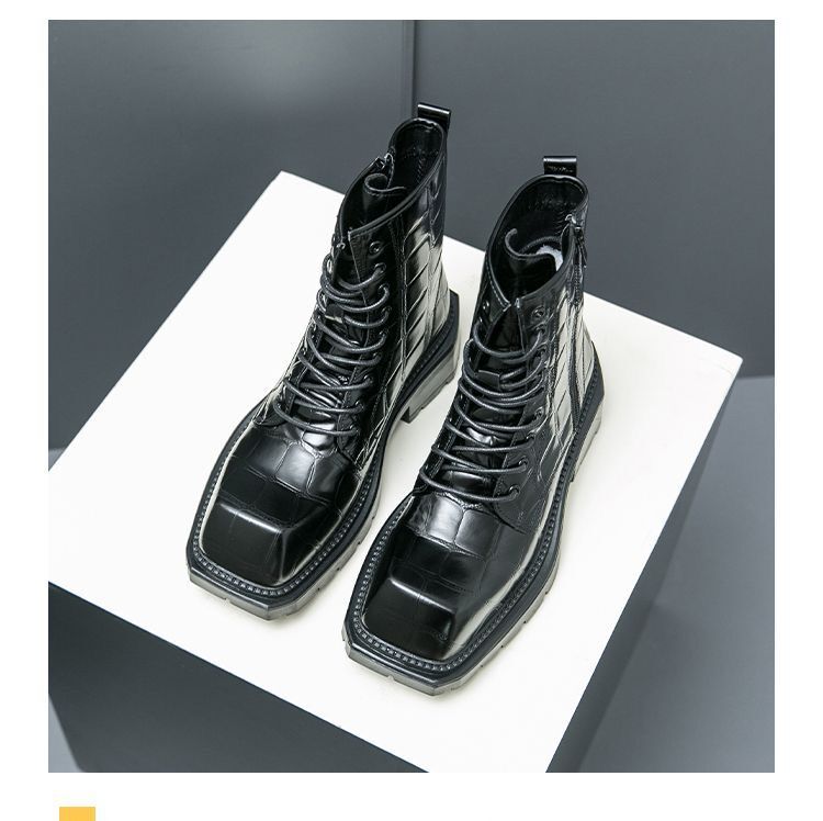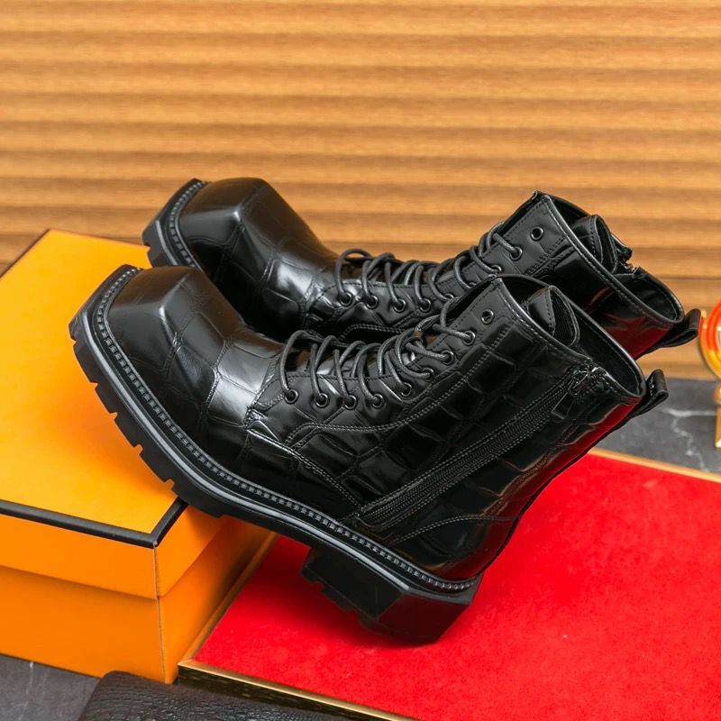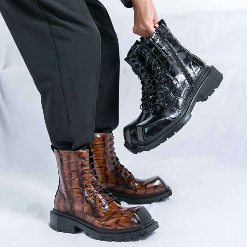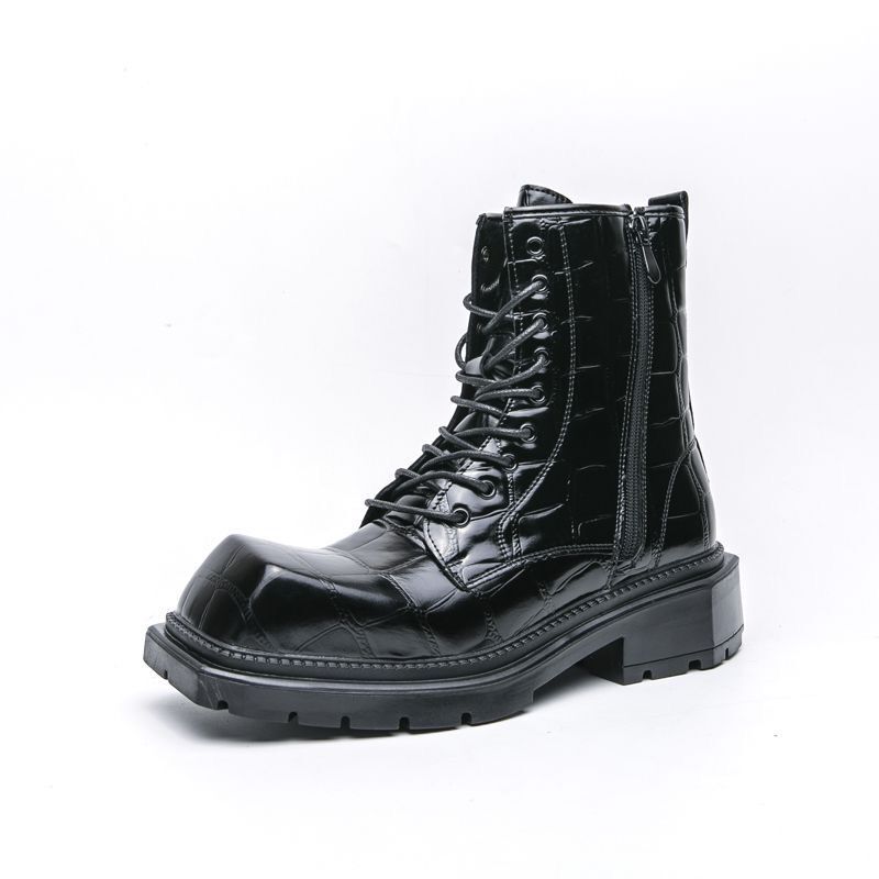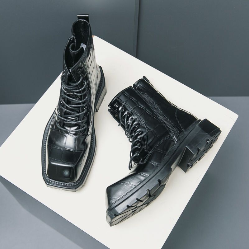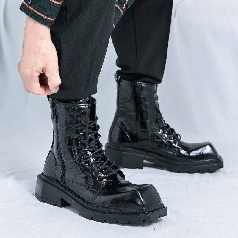 ★新品★メンズ GZ41001-26.5cm/43 ショートブーツ ブラック(2色) ビジネスシューズ ワークブーツ サイドゴア 厚底 身長UP