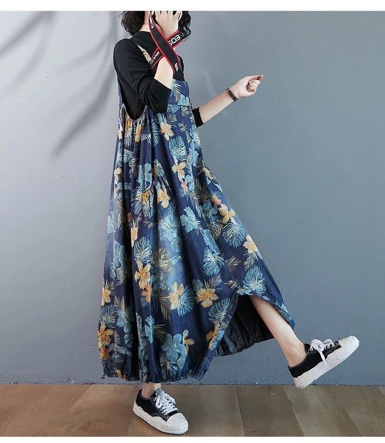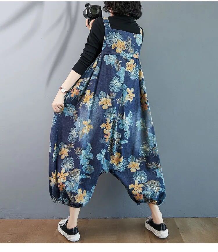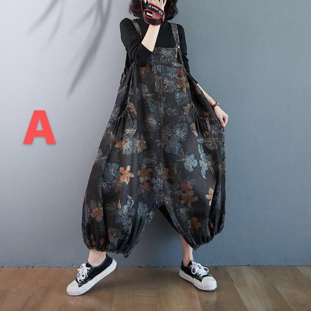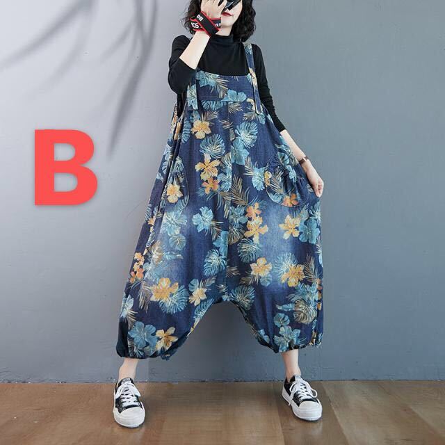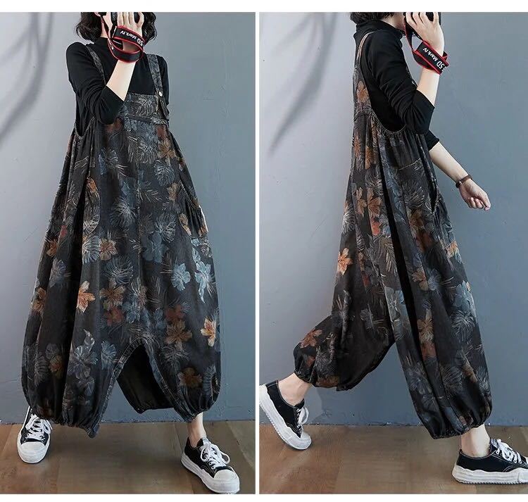 オーバーオール デニムパンツ 春秋レディース 花柄 サロペット ゆったり LPCA024(2色フリー)
