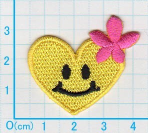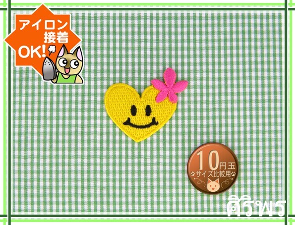 アイロンワッペン/刺繍/アップリケ/花ハートスマイル/黄色(単品)/ニコニコ/ニコちゃんマーク