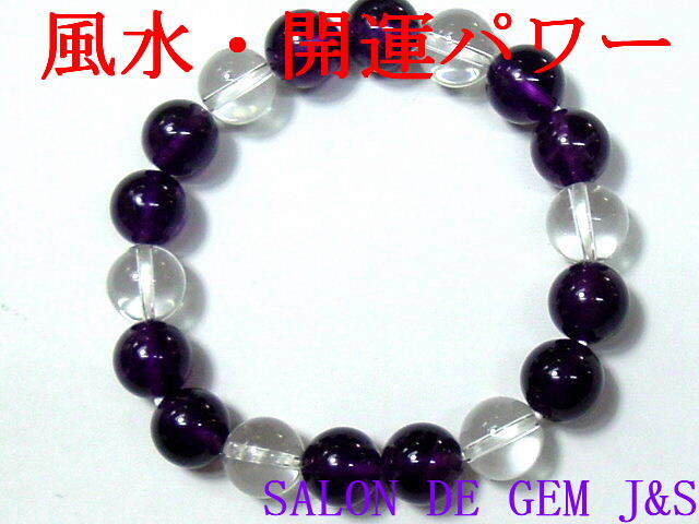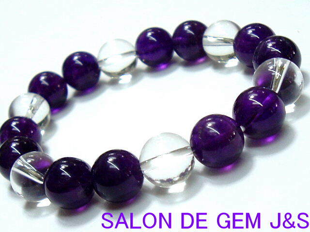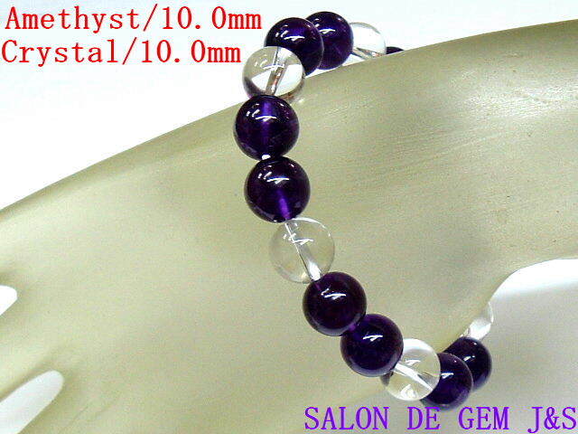 【大粒】【紫陽の煌き】【高級天然アメジスト/極上天然クリスタル 開運ブレスレット】【A 10.0mm/C 10.0mm】【内径:約15cm】