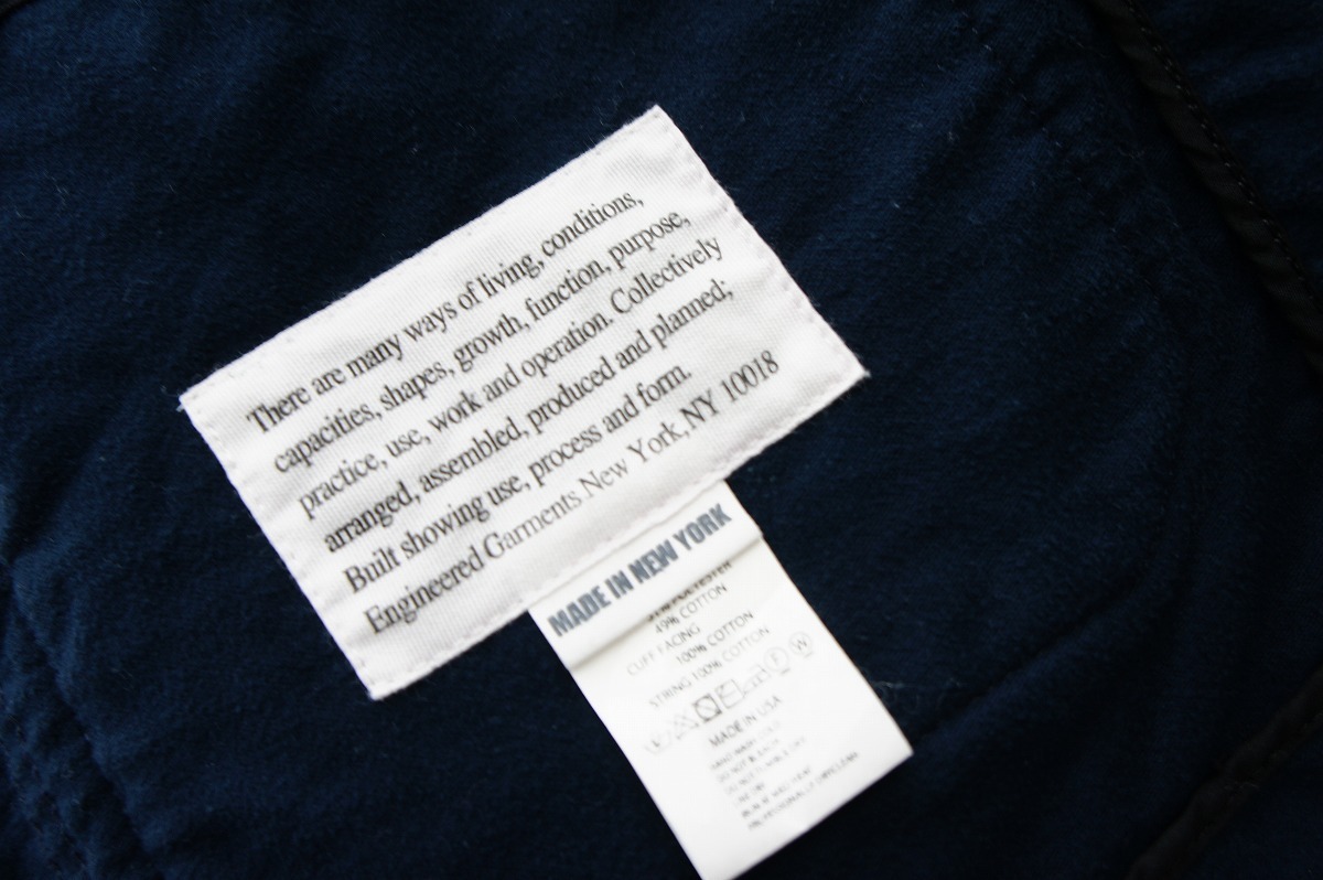 定番ENGINEERED GARMENTSエンジニアドガーメンツ Benson Jacket Moleskin ベンソン ジャケット モールスキン 紺926O▲