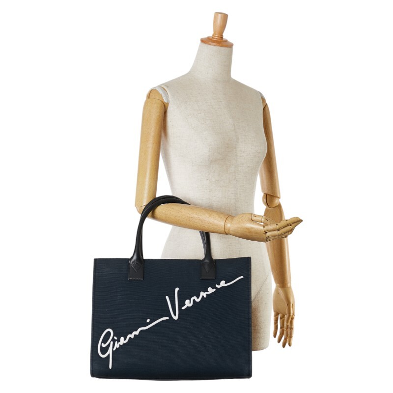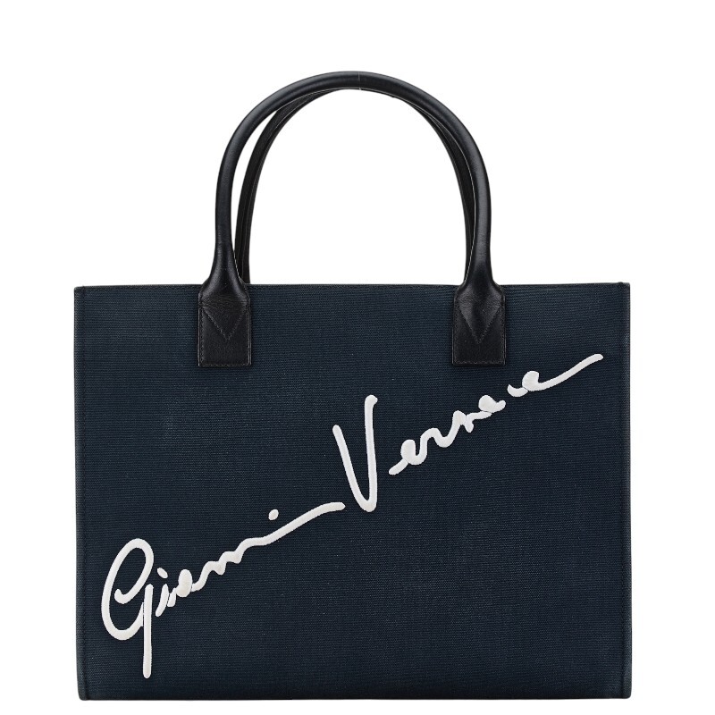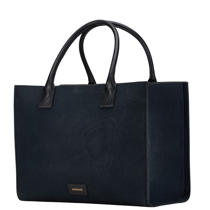 ヴェルサーチェ ハンドバッグ トートバッグ ネイビー キャンバス レザー レディース VERSACE 【中古】