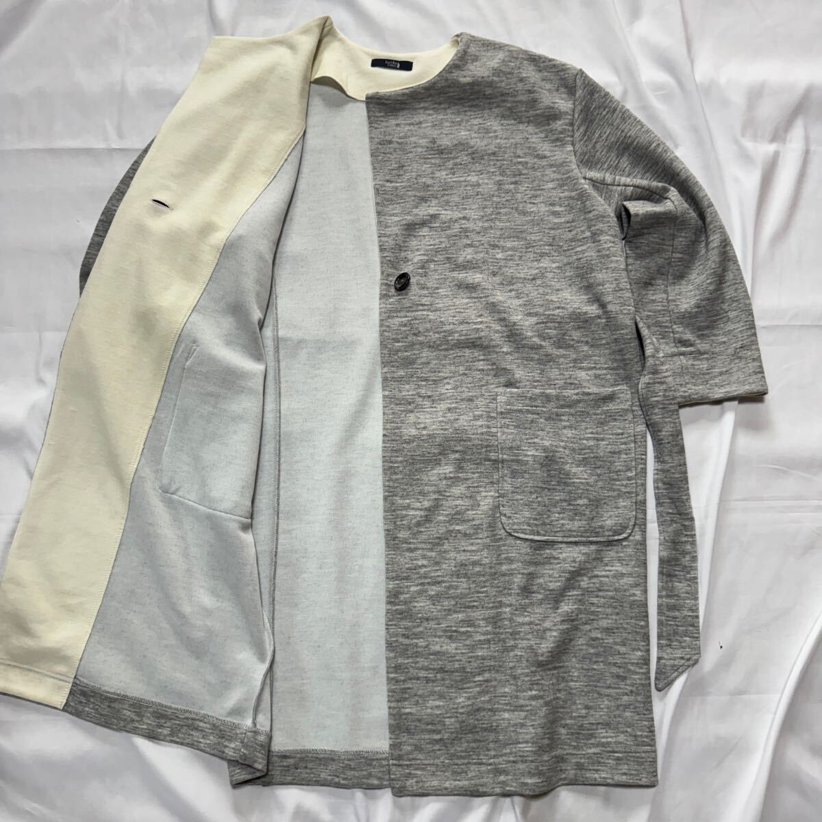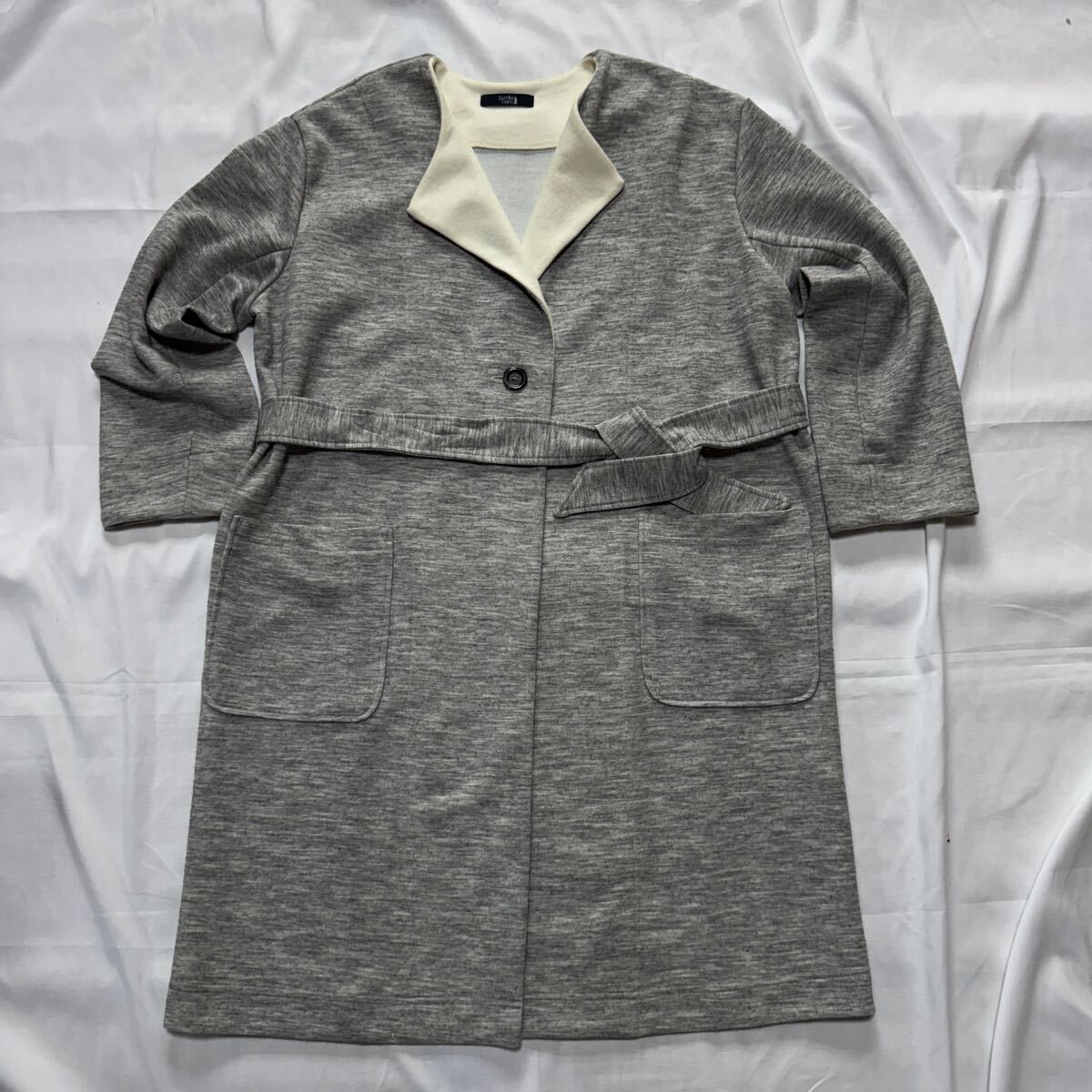 East Boy イーストボーイ ノーカラー ベルト付き コート グレー