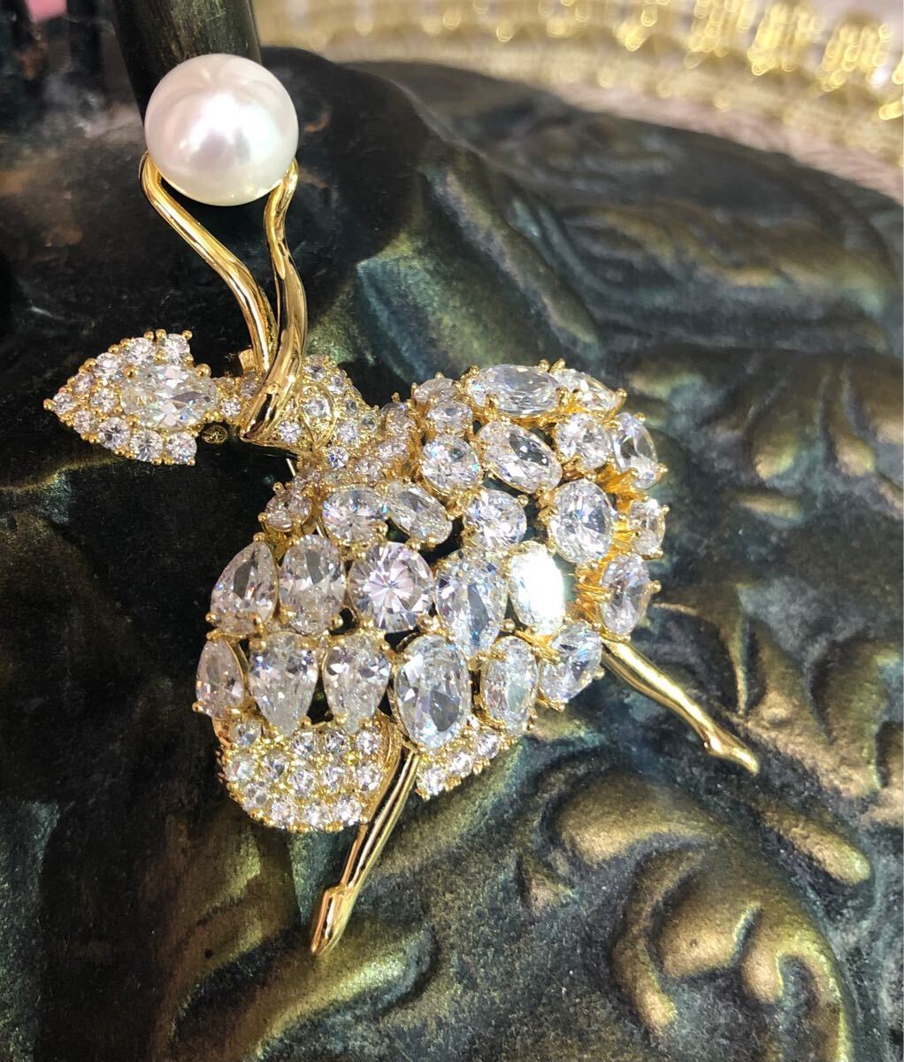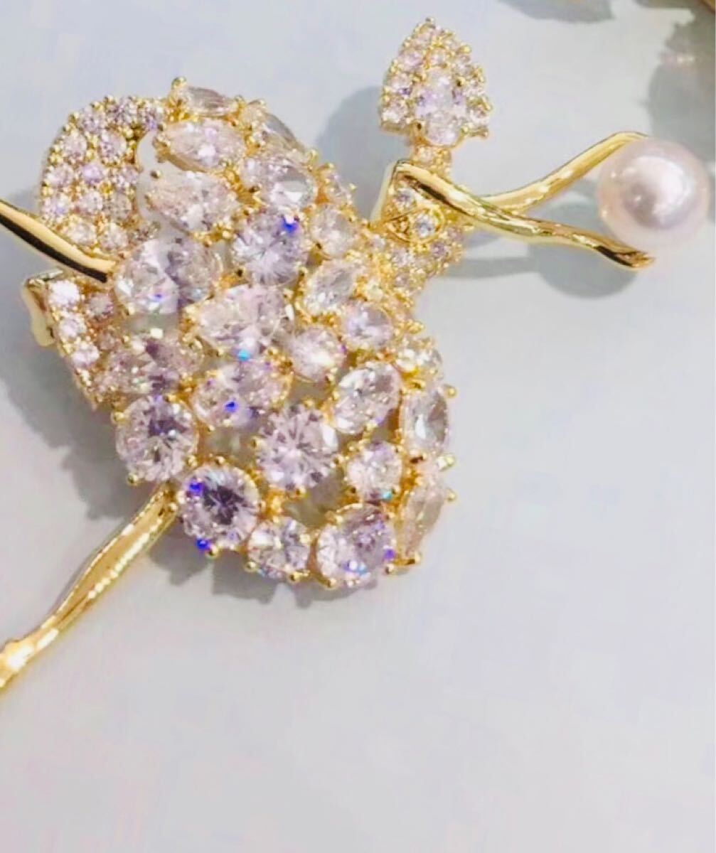 ●商品名:天然淡水真珠/パールダイヤ入バレリーナモチーフブローチ