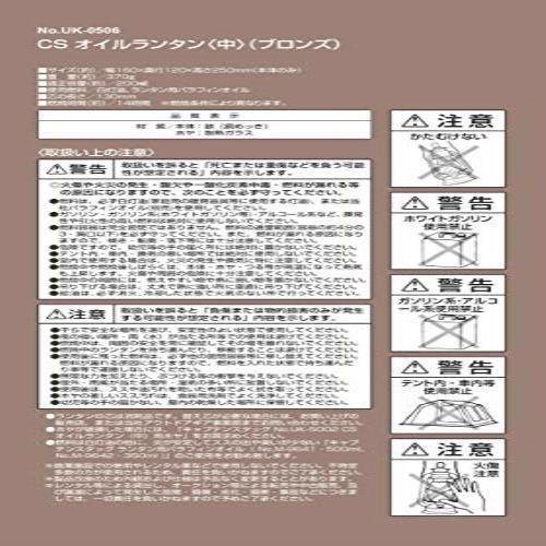 ブランド:キャプテンスタッグ(CAPTAIN STAG) カラー:中・ブロンズ サイズ:中 製品サイズ:(約)幅160×奥行120×高さ250mm(本体のみ)、製品重量:(約)370g 適正容量:(約)200ml、使用燃料:白灯油、ランタン用パラフィンオイル 芯の長さ:130mm、燃焼時間:(約)14時間※燃焼条件により異なります 材質:本体/鉄(銅めっき)、ホヤ/耐熱ガラス、原産国:中国 注意:ホワイトガソリン使用禁止 | |||