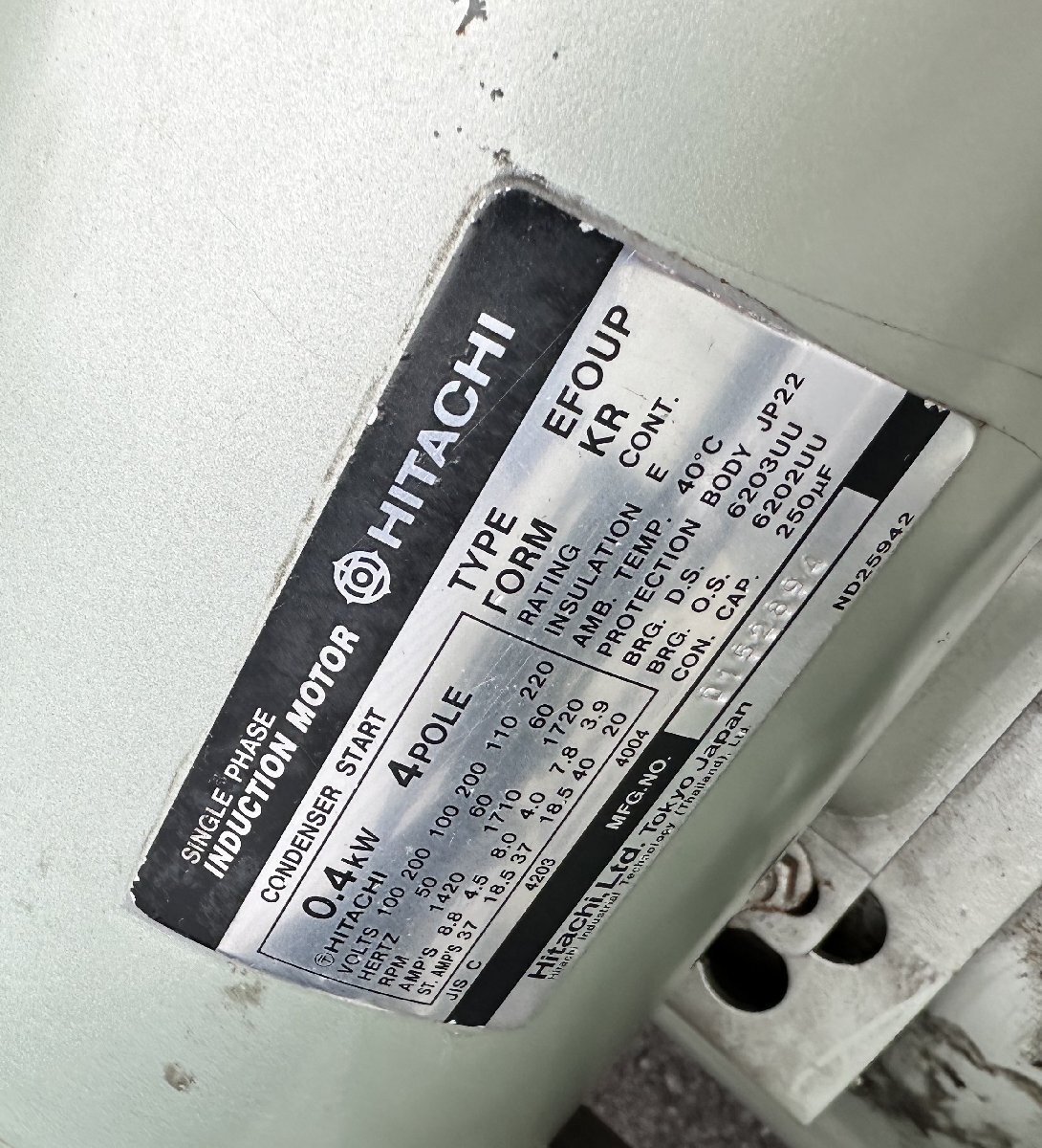 | used HITACHI 日立 エアーコンプレッサー 0.4P-7S 60Hz タンク容量38L 100V 50Hz 静岡県裾野市 | |