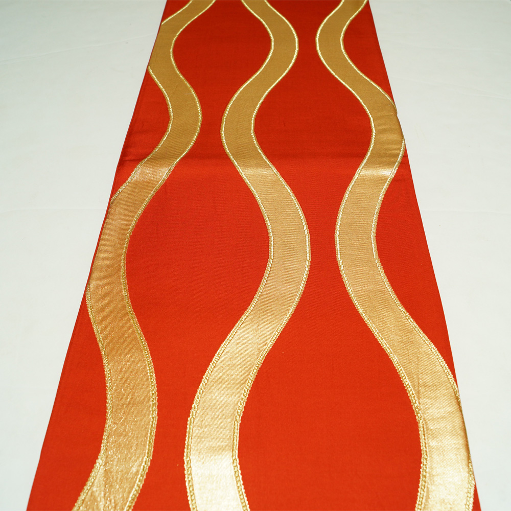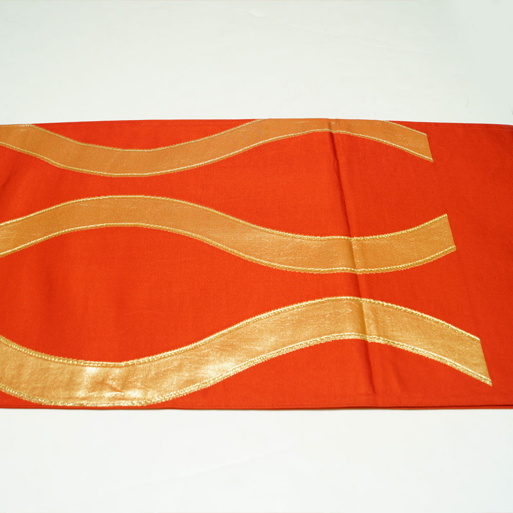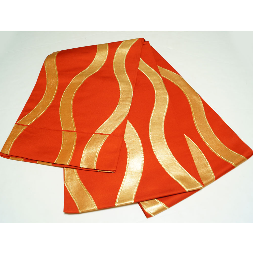 | 商品 説明 | 金赤色系の地に金糸の立涌模様が織られた袋帯です。 |