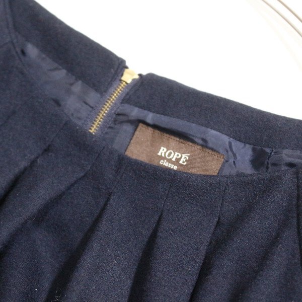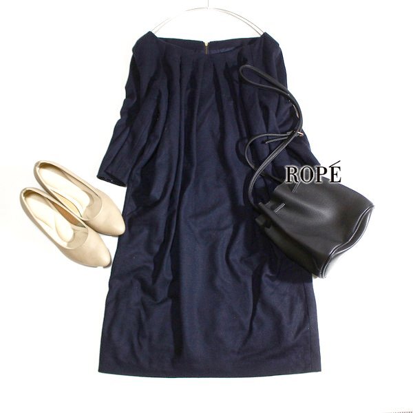 美品 ROPE' classe ロペ ウール100% 綺麗め フラノストレッチ ワンピース 9号 M 秋 冬 24C10