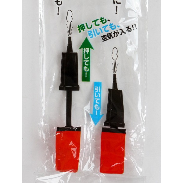 風船、ビーチボール、浮き輪の空気入れに便利な、倍速ハンディポンプです。