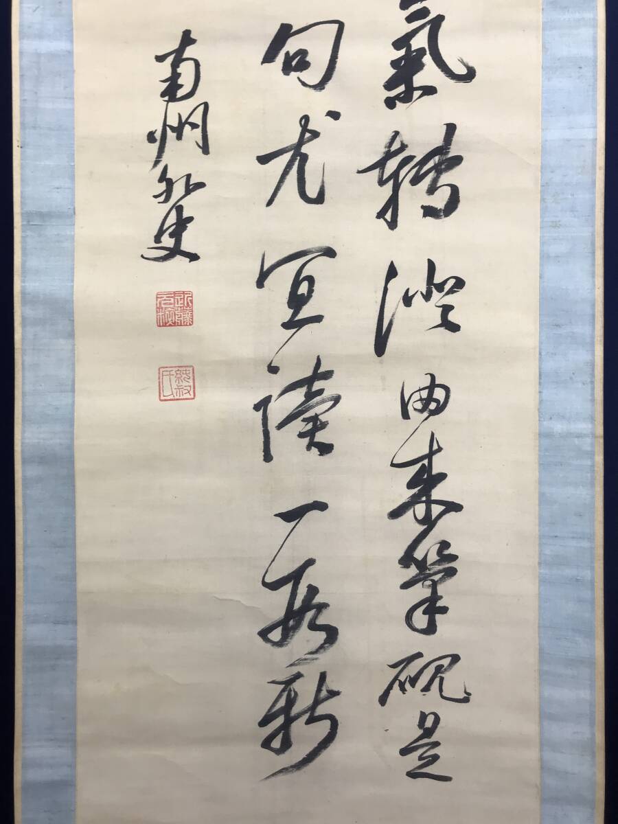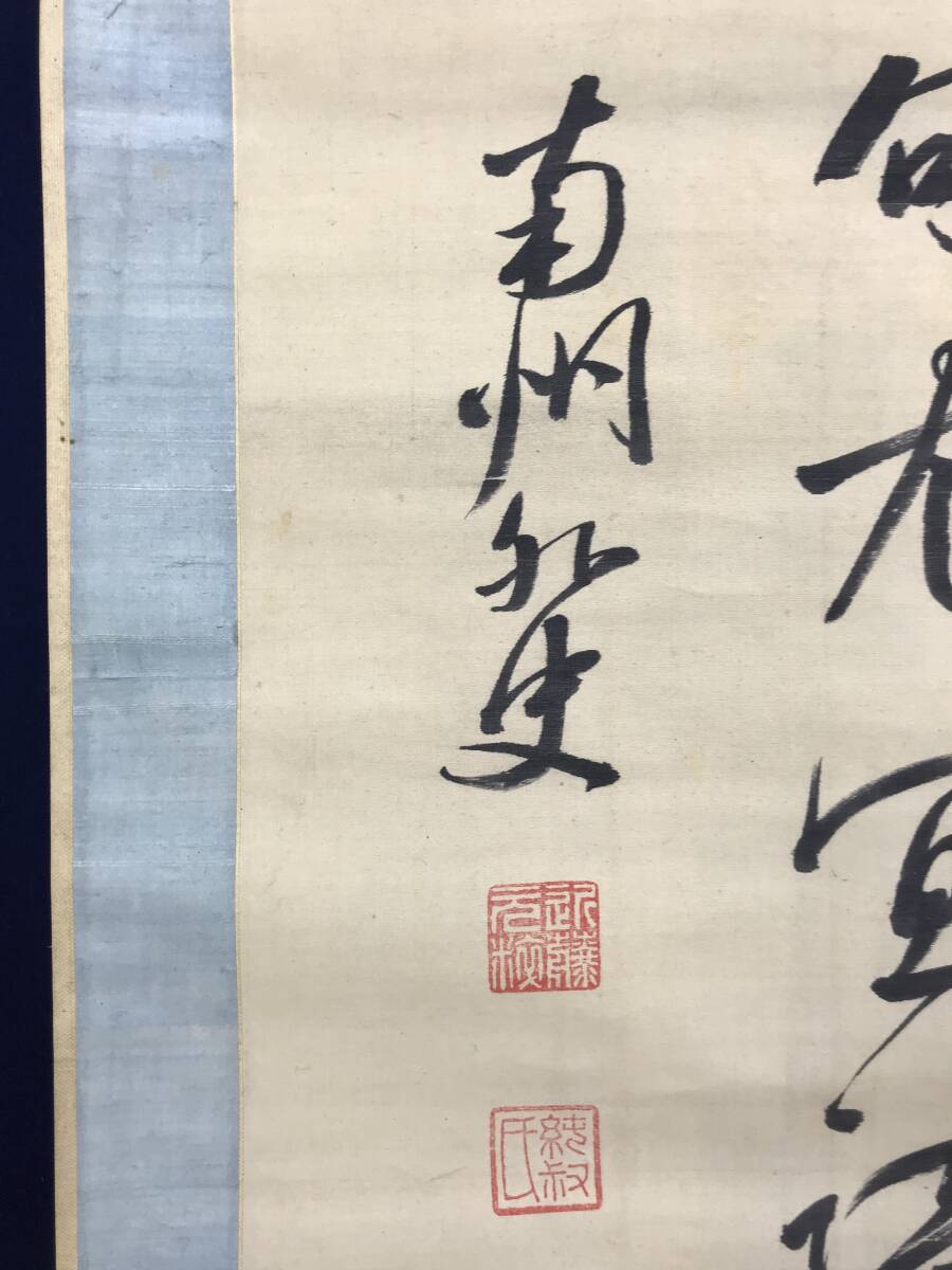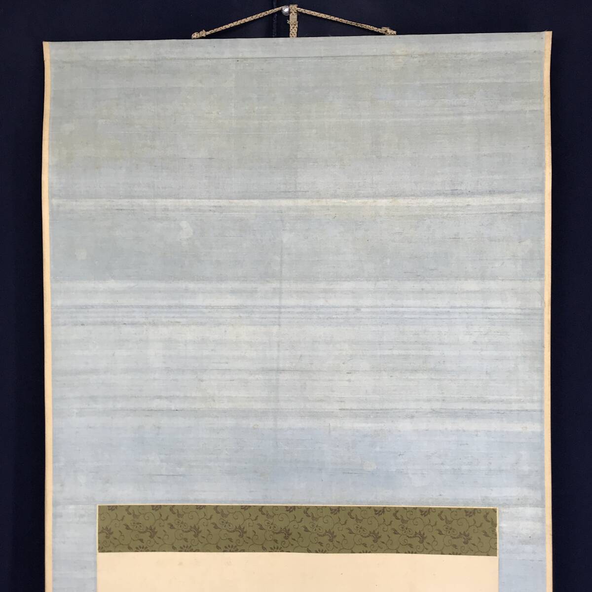 【作品状態】 本紙は絹本肉筆です。本紙は多少の薄汚れあります。表装は時代感あり、薄汚れ、全体に糊シミあります。