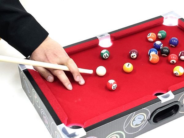 ミニサイズで場所をとらず、家庭で気軽に出来るミニビリヤード台セット!