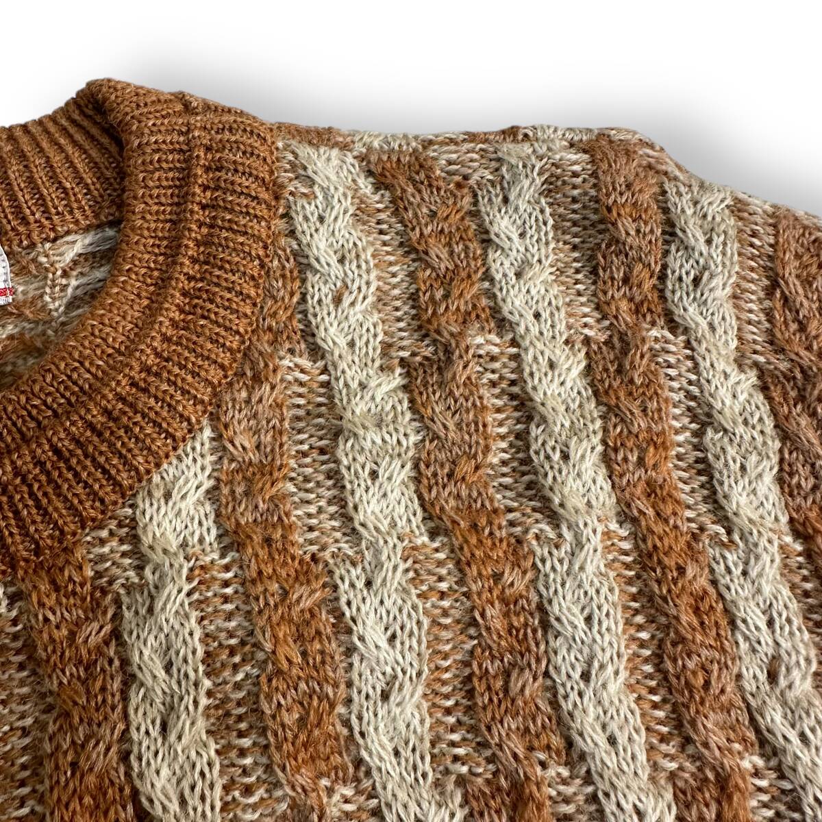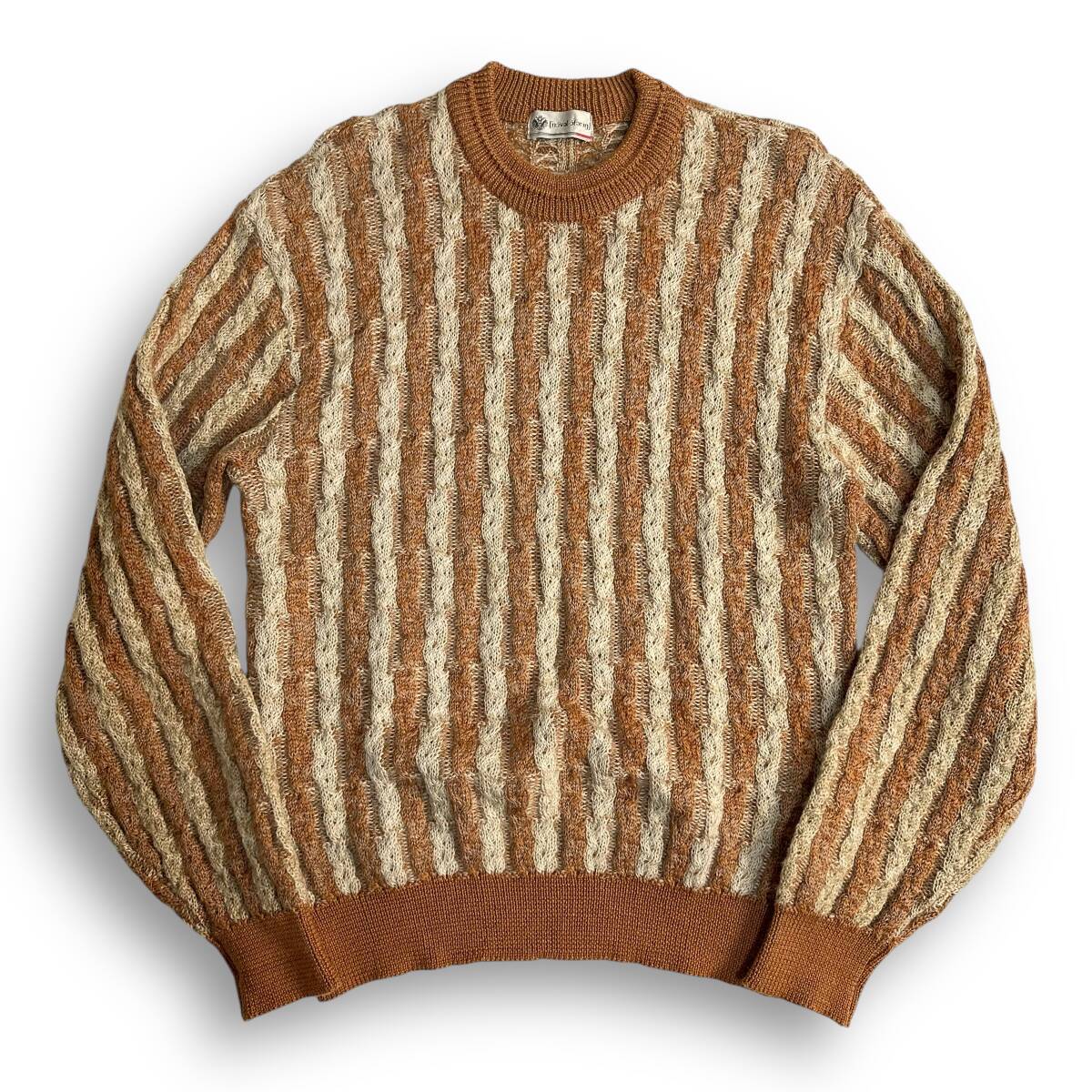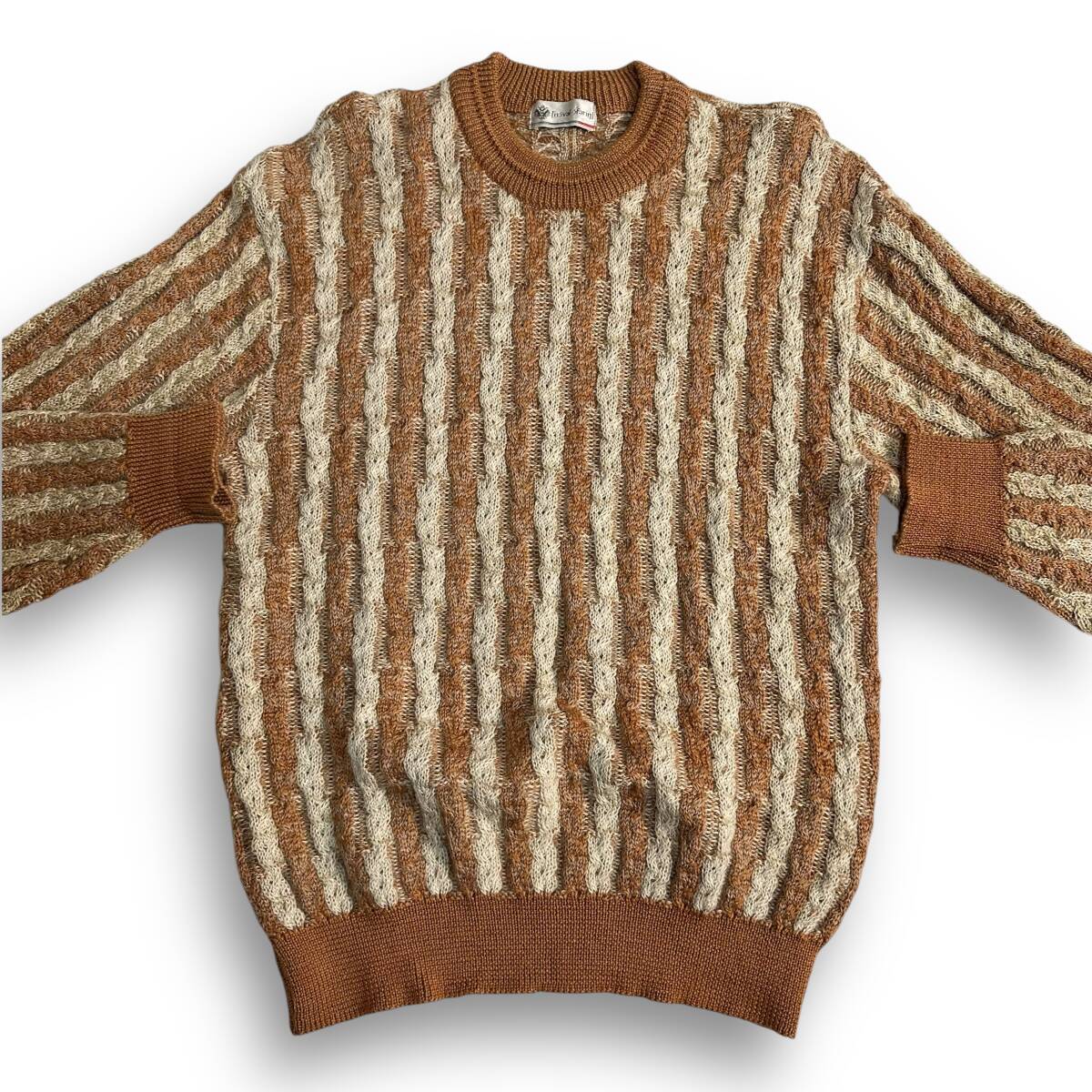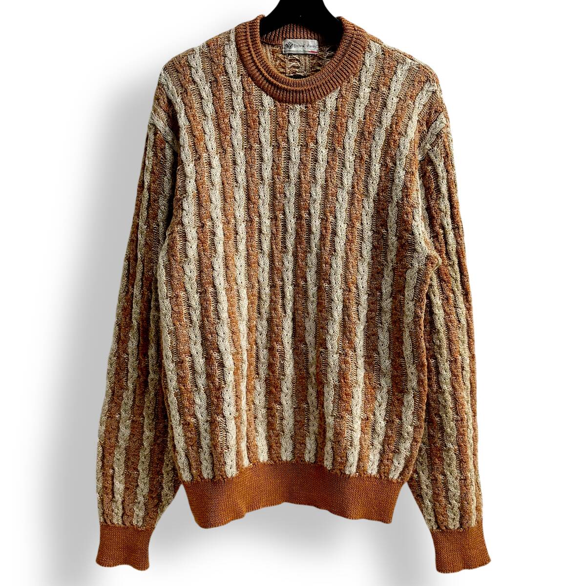 レア 良好【VINTAGE】80s 90s ケーブルデザイン レトロ ミスタービルド ビンテージニット オールド 古着 古着ミックス オレンジ