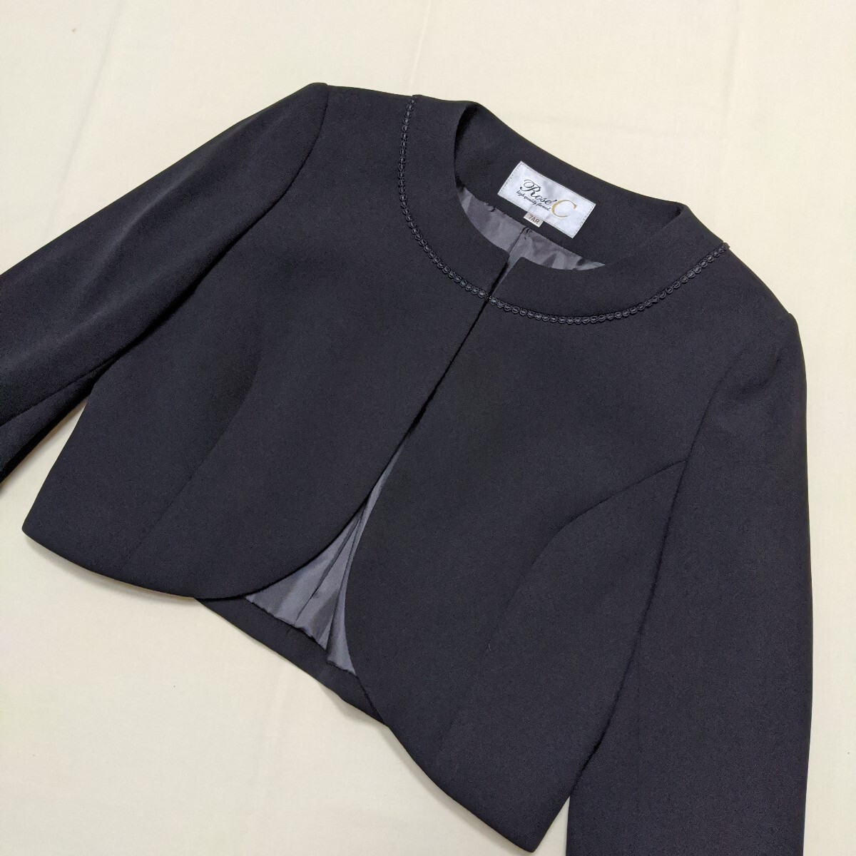 シンプルで上品なブラックフォーマルのアンサンブルです。