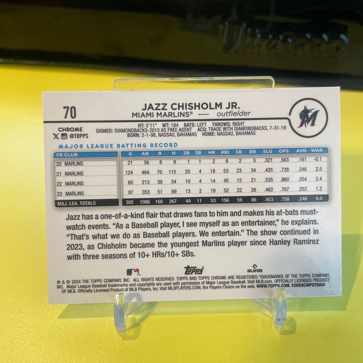 Jazz Chisholm Jr. 2024 Topps Chrome - Miami Marlins Refractor #70 Yankees MLB baseballカード