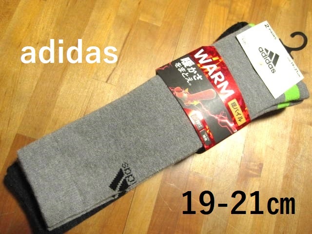 *送料無料*新品*19-21㎝*アディダス*ハイソックス2足*WARM暖かさをまとえ。総パイル②*土踏まずサポート・つま先かかと補強*adidas*