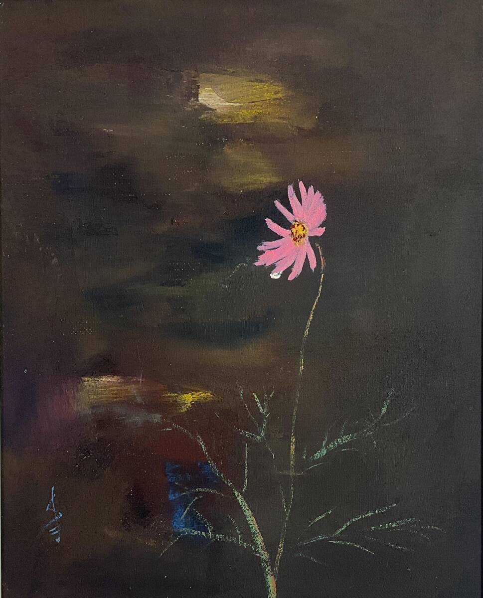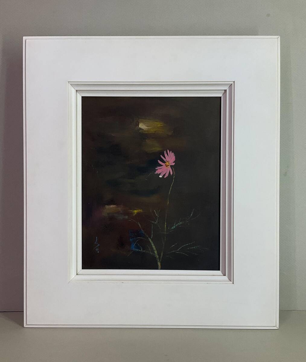 【真作】《絵画》青沼茜雲 青沼茂男 コスモス 油彩 F3 額装 洋画家 サロン・ドートンヌ会員 日展 示現会 福岡
