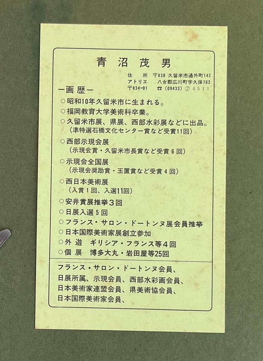 本名、青沼茂男。福岡教育大学卒業後、石橋美術館学芸員補を経て高校教員となる。